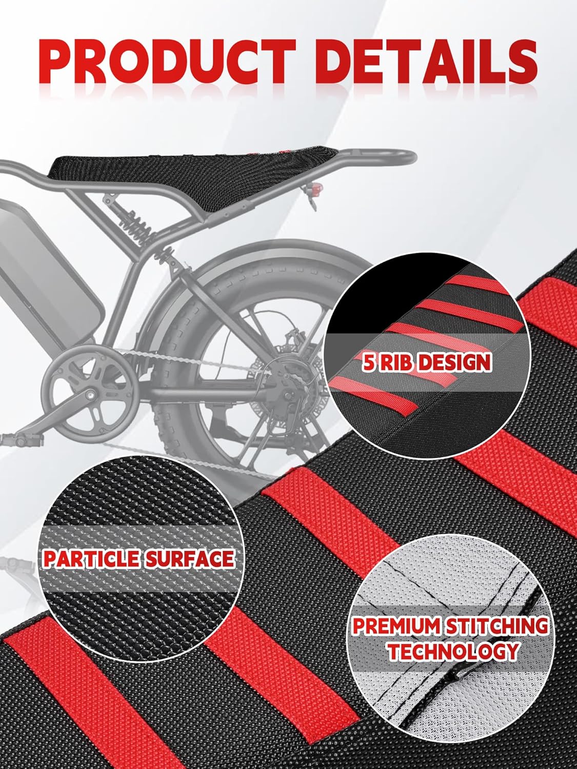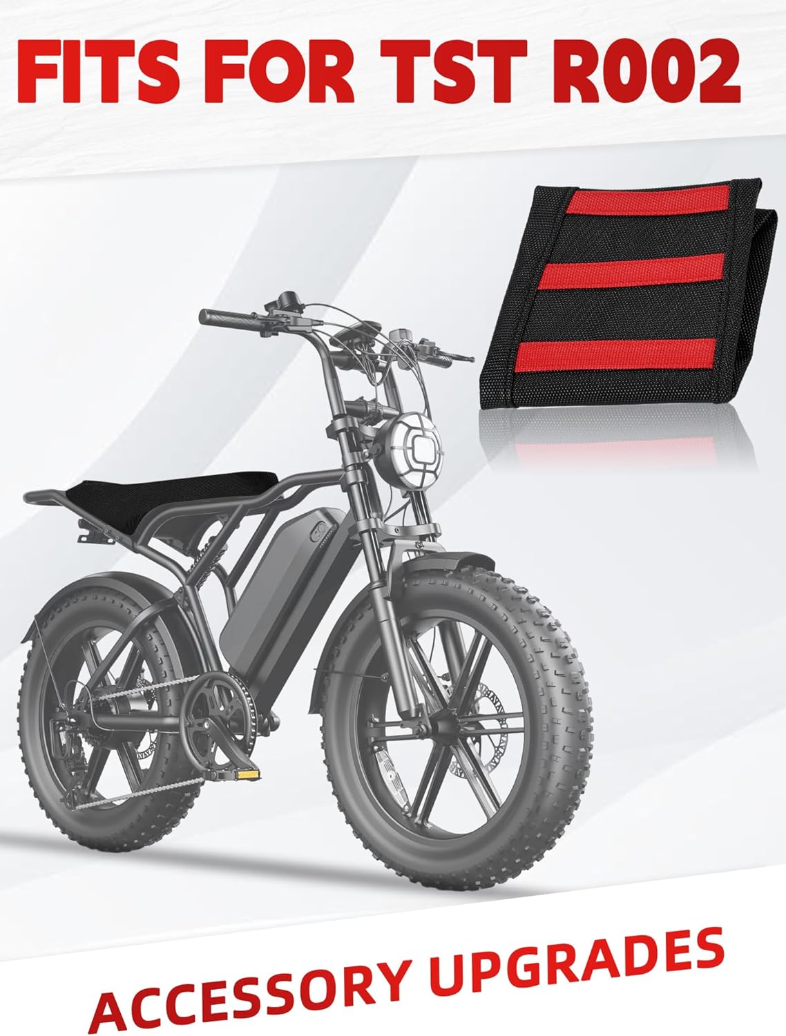 Fitment: For TST R002 Features: Material: The cushion cover is made of premium PVC fabric,which is wear-resistant, heat-resistant, and retains its shape without deformation. Anti Slip Design: The surface of the seat cover has anti slip stripes, which can increase friction during riding, reduce sliding, enhance control, and ensure riding safety. Waterproof: The bike seat cover features waterproof properties, blocking rain, splashes, and mud for worry-free riding in rainy conditions. Function: Prevent seat wear, scratches, or dirt, and extend its service life. Easy To Clean: Simple to install and remove—ideal for outdoor riding and other dirty environments. It is easy to remove and clean after use. Package Includes: 1*Ebike Seat Cover Instruction of Installation is NOT Included