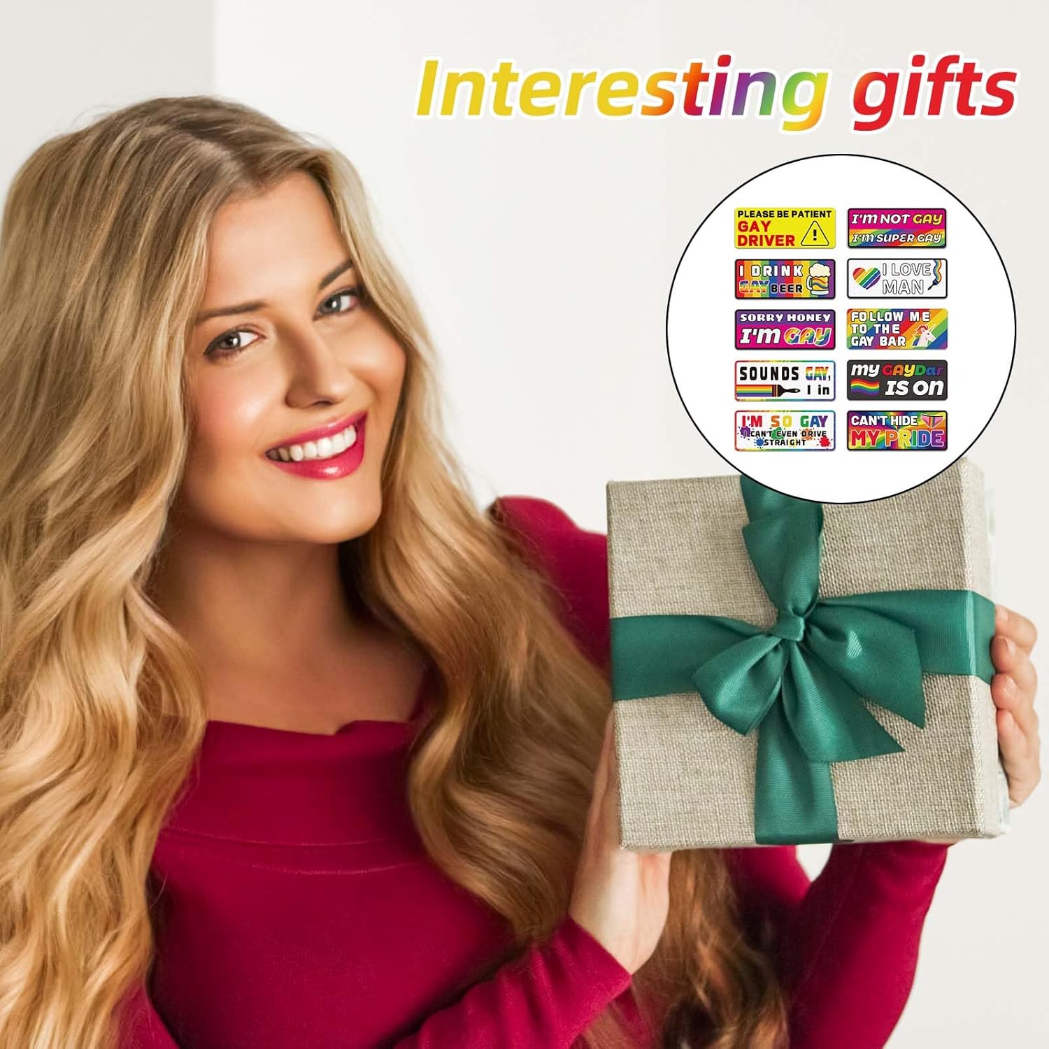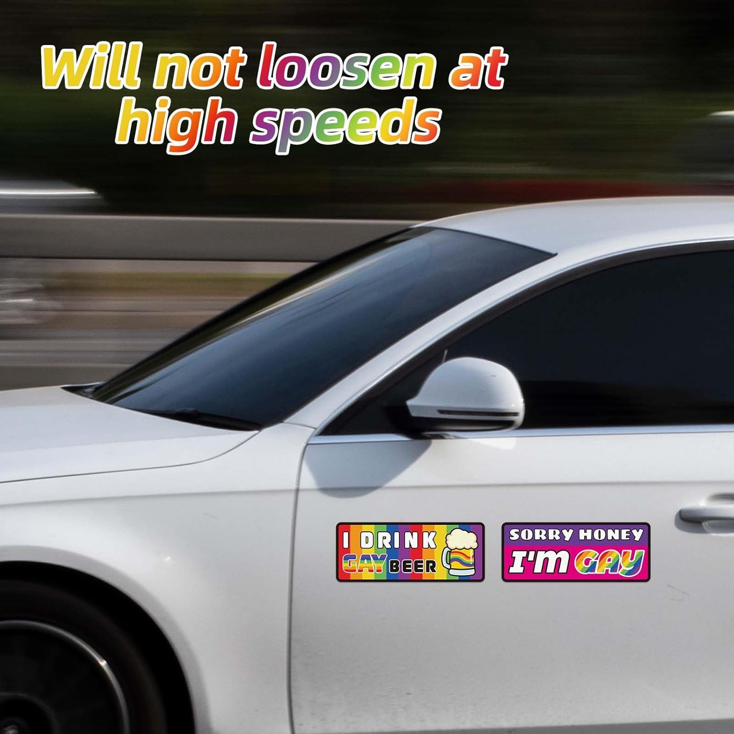 Specification: Color: colorful Material: PVC and magnet Product Size: 20x8cm/7.87x3.15in Package details: 10 x gay bumper stickers Note: Due to manual measurement, the size and weight may have a certain error. Due to the difference between monitors, there may be a slight color difference existed.