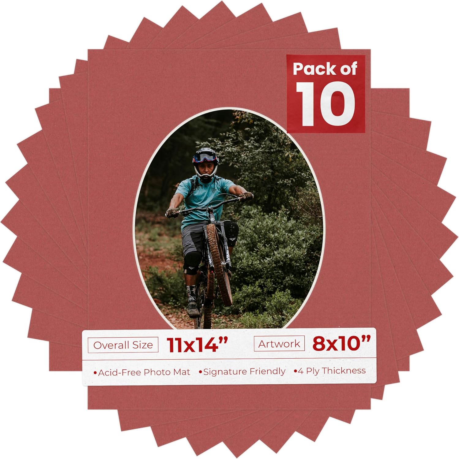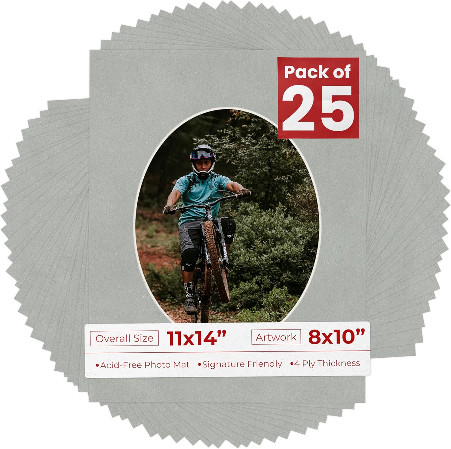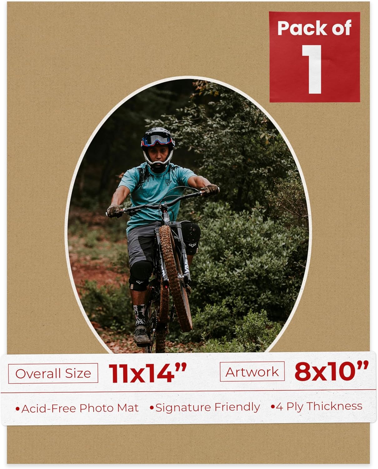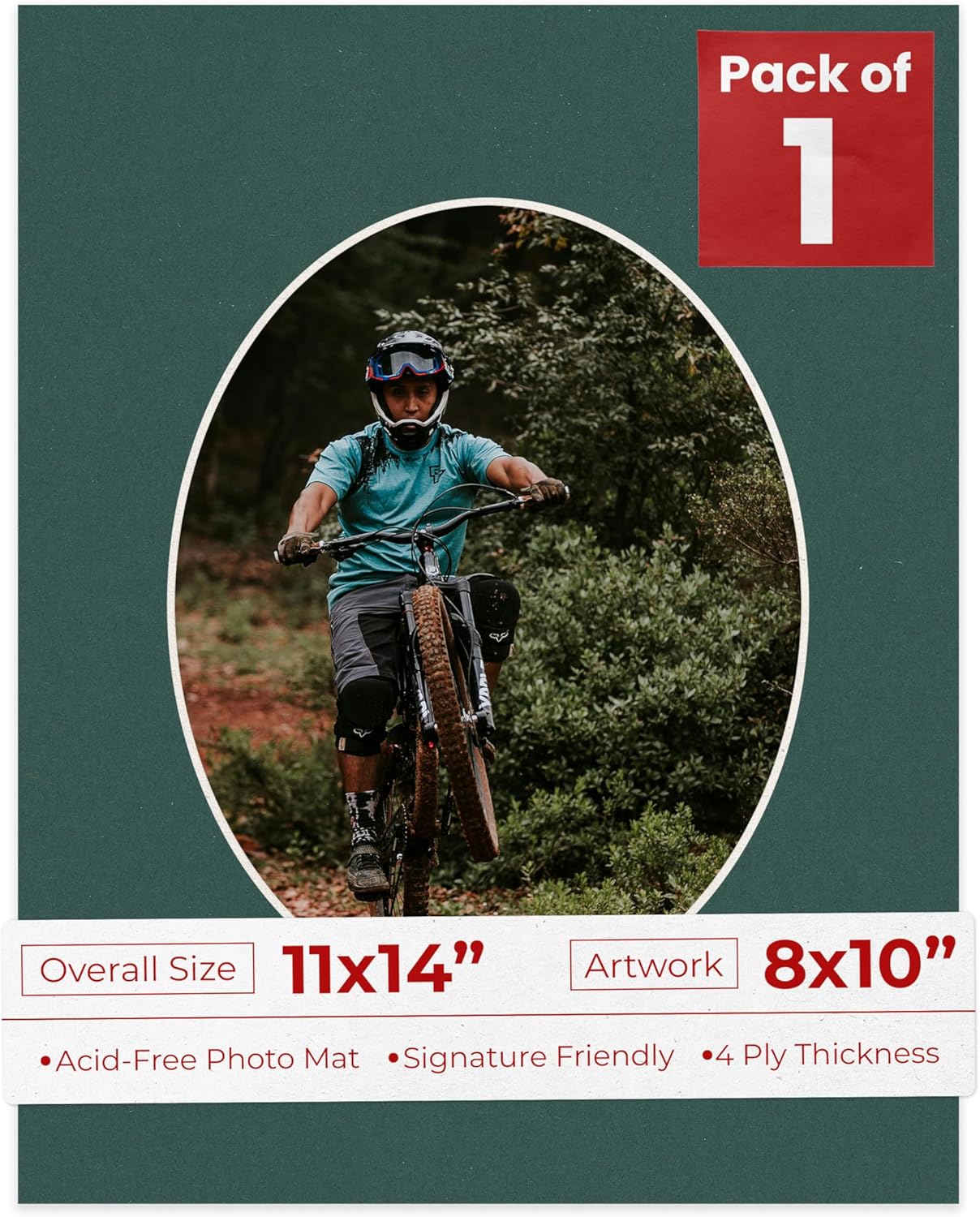 OVERALL SIZE (Made to fit a Frame Size Measuring) 11x14 Inches | Bevel Cut Oval Opening Size of 7.5x9.5 inches | For a Photo Measuring 8x10 Inches. THIS IS FOR 10 matboards. White linen canvas PHOTO MAT with a oval bevel cut opening. A great way to change up the look of an existing frame with a new accent mat board. This matte also works great as a replacement for damaged, dirty, or faded matting in your old frames. PREMIUM QUALITY: Our precut photo matboards are acid free & precision cut with a 45 degree bevel by machine for perfect corners and NO over-cuts every single time. All of our precut matboards are MANUFACTURED BY POSTER PALOOZA IN THE USA.