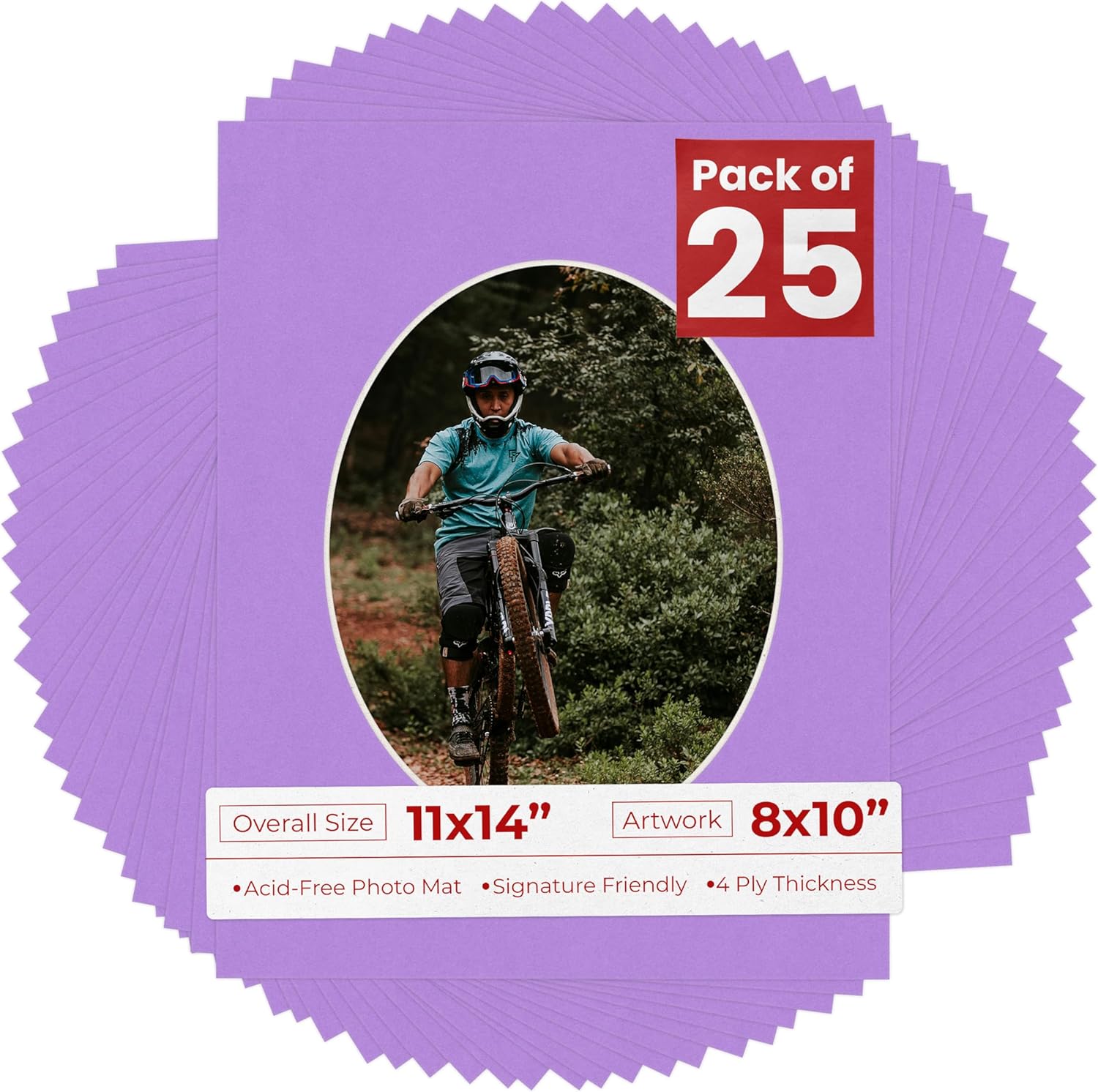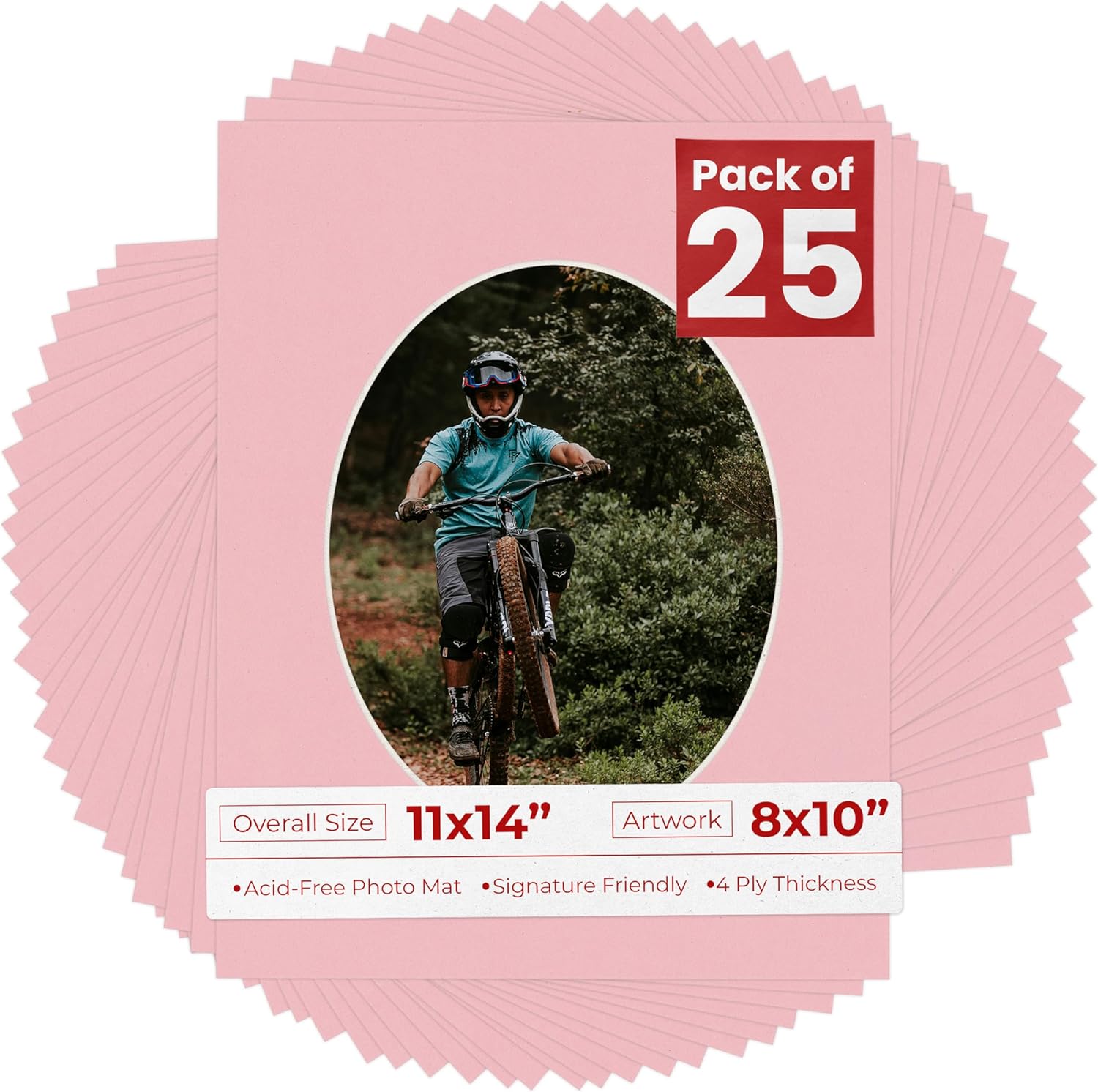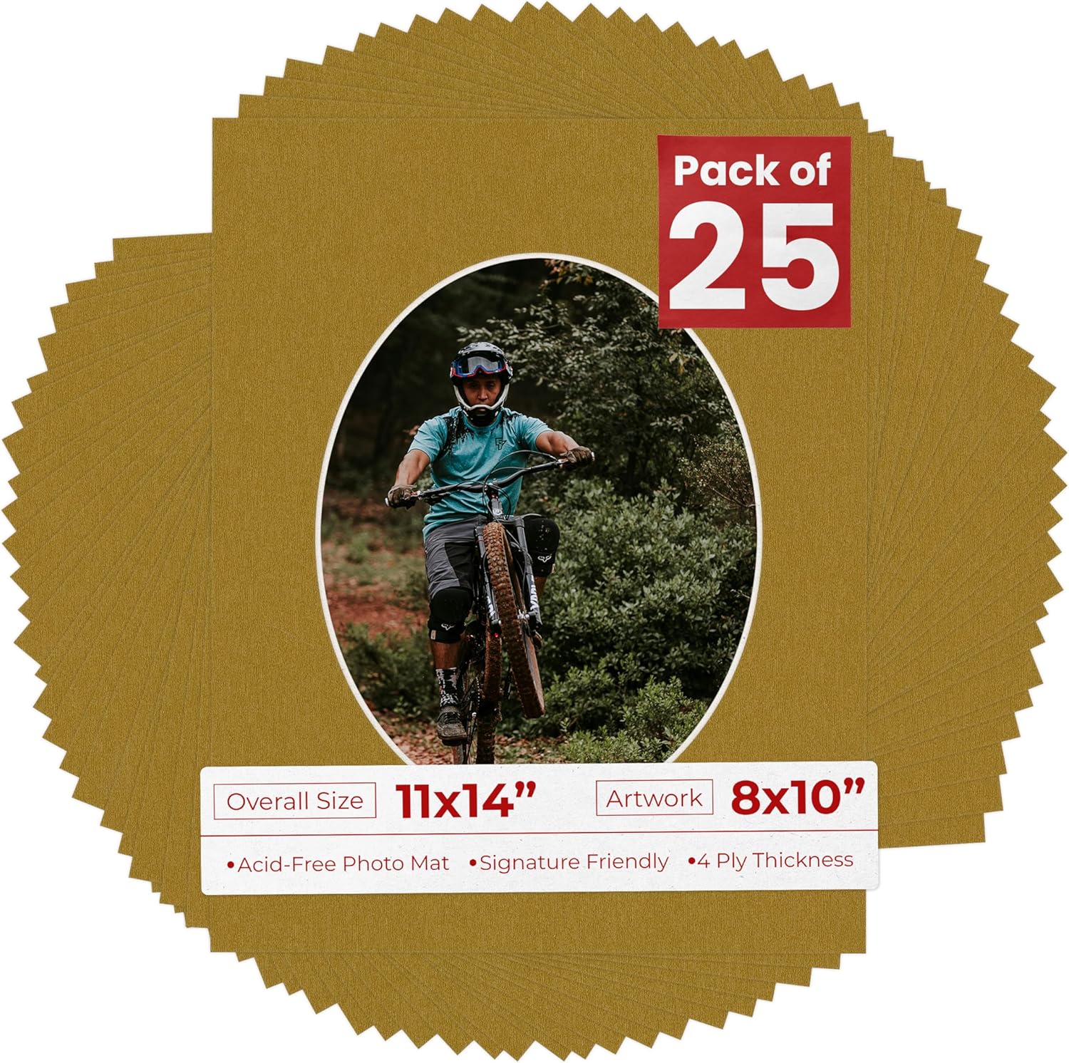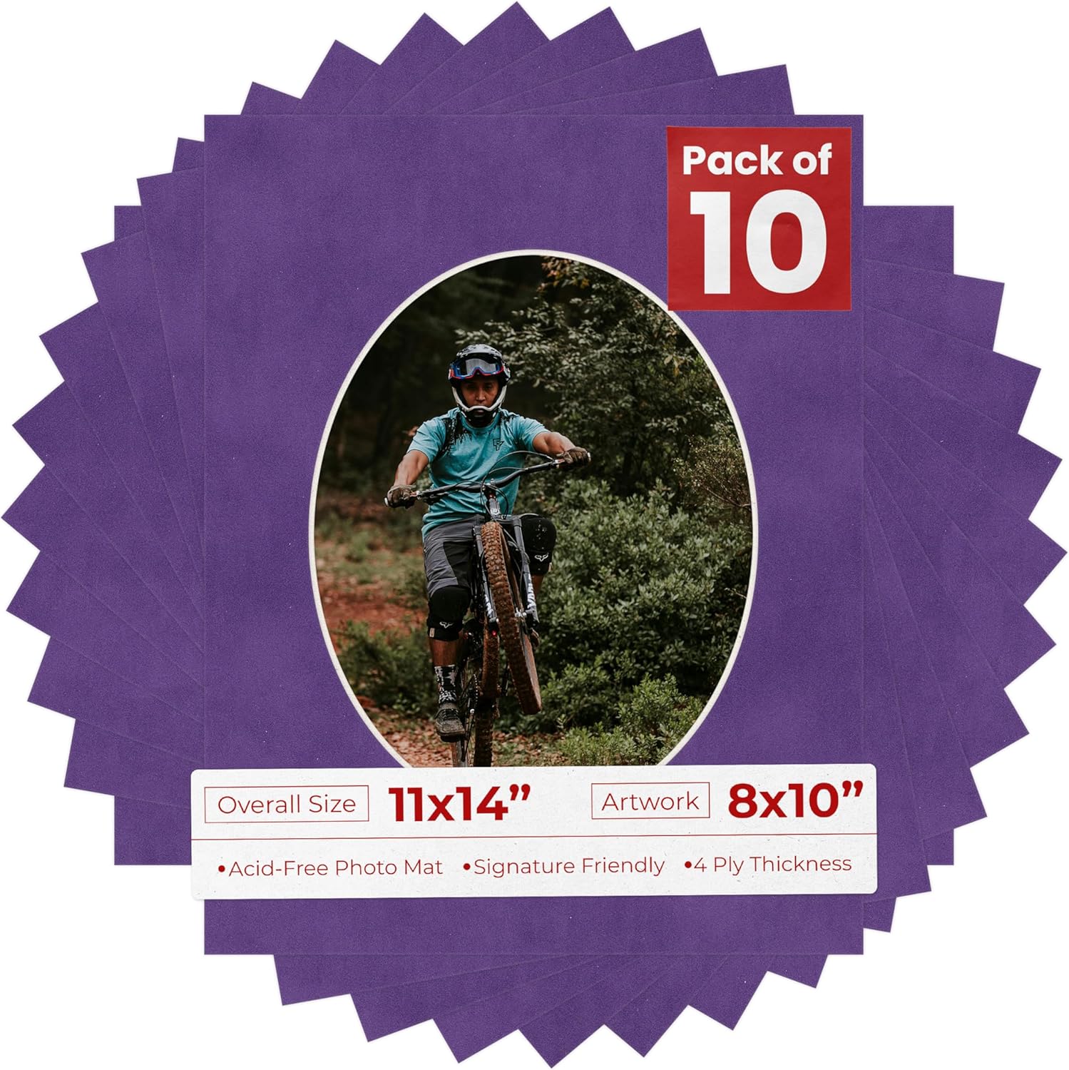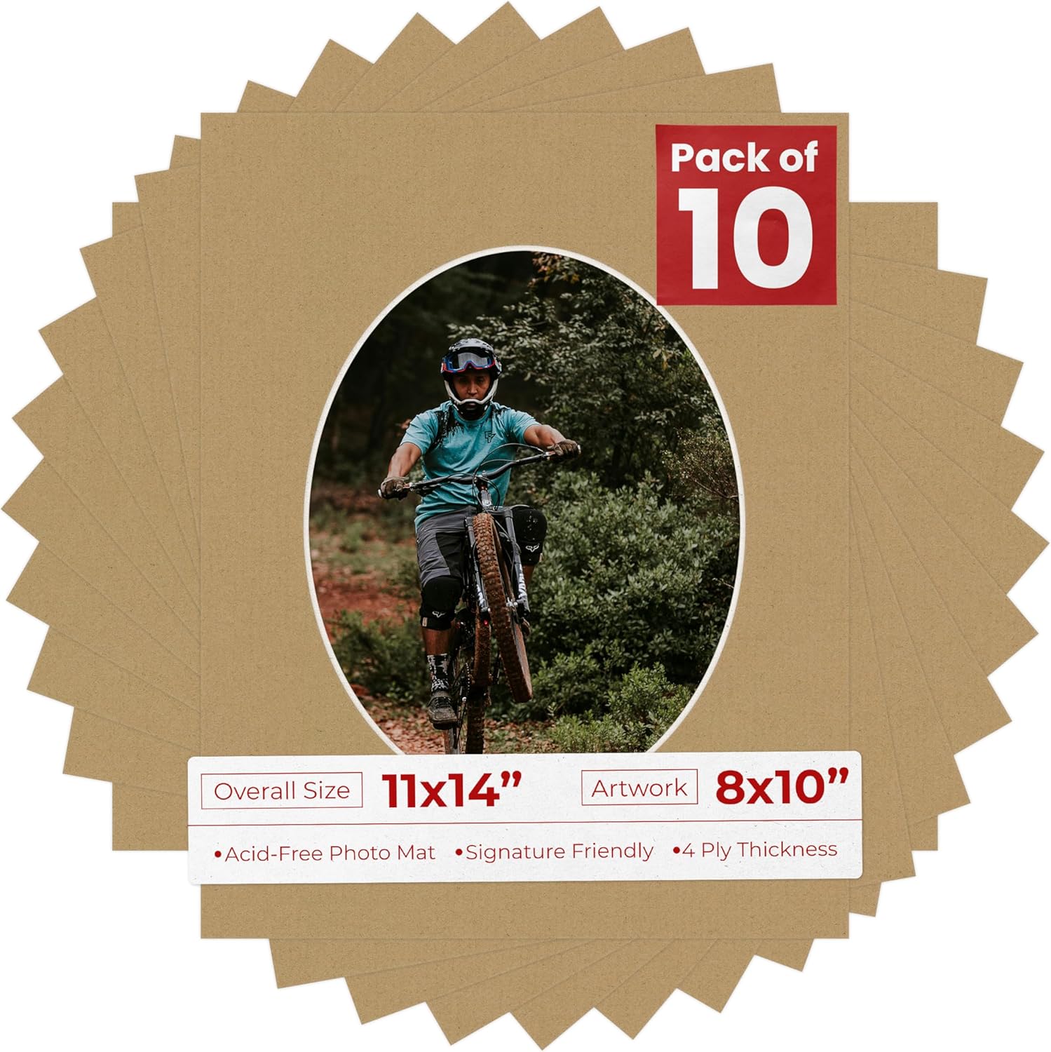 OVERALL SIZE (Made to fit a Frame Size Measuring) 11x14 Inches | Bevel Cut Oval Opening Size of 7.5x9.5 inches | For a Photo Measuring 8x10 Inches. THIS IS FOR 10 matboards. White linen canvas PHOTO MAT with a oval bevel cut opening. A great way to change up the look of an existing frame with a new accent mat board. This matte also works great as a replacement for damaged, dirty, or faded matting in your old frames. PREMIUM QUALITY: Our precut photo matboards are acid free & precision cut with a 45 degree bevel by machine for perfect corners and NO over-cuts every single time. All of our precut matboards are MANUFACTURED BY POSTER PALOOZA IN THE USA.