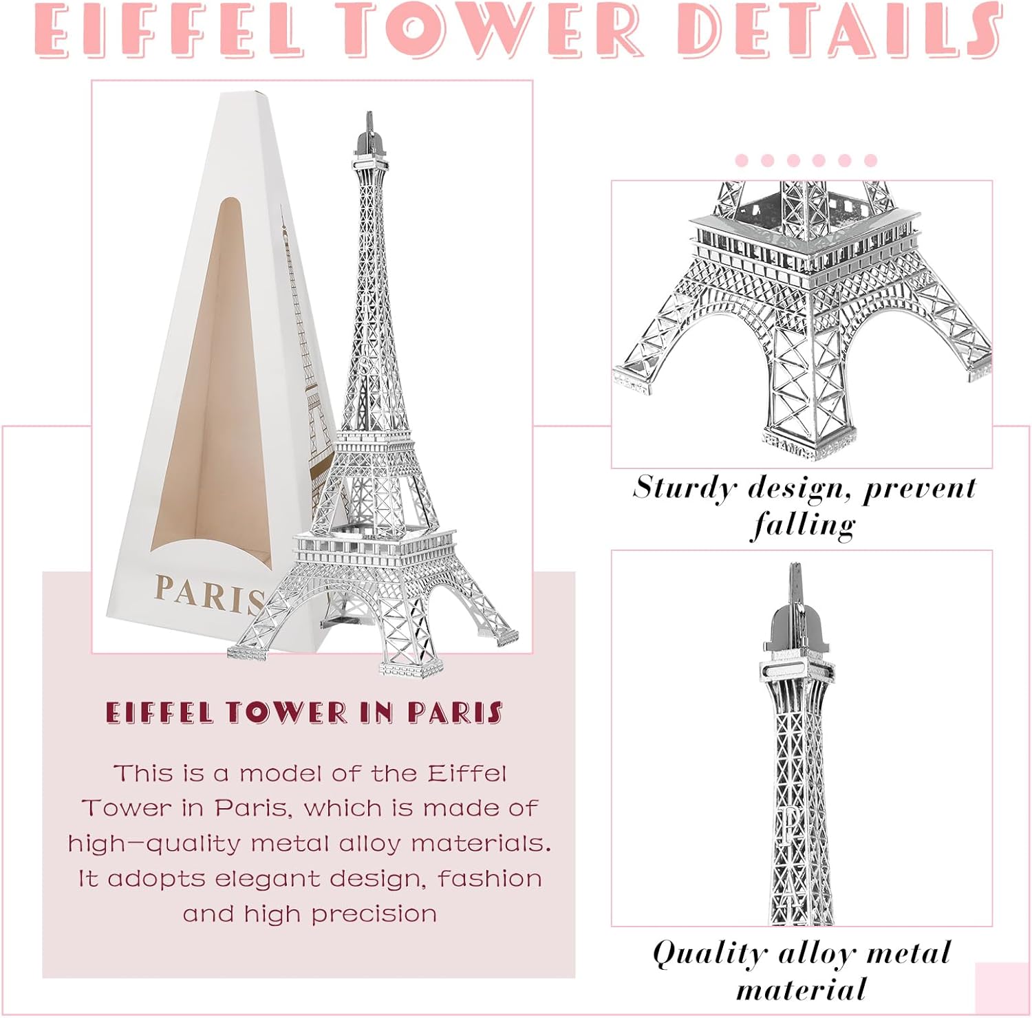 Features: Compact and Travel-Friendly: Comes with a white storage box for easy carrying. Suitable for decorating on the go or gifting as a French-inspired souvenir. Enhance Your Décor: Brings French romance into living rooms, offices, or events. Suitable for everyday use, adding timeless charm to any space. Specifications: Material: alloy metal Color: silver Size: about 15 inches/ 38 cm Package includes: 12 x Eiffel Tower statue decors Notes: Manual measurement, please allow slight errors on size. The color may exist a slight difference due to different screen displays. Pointed items are included, please be careful when using and please keep them away from kids.