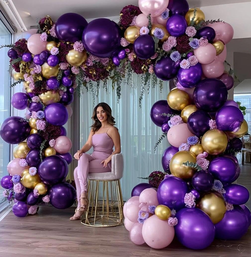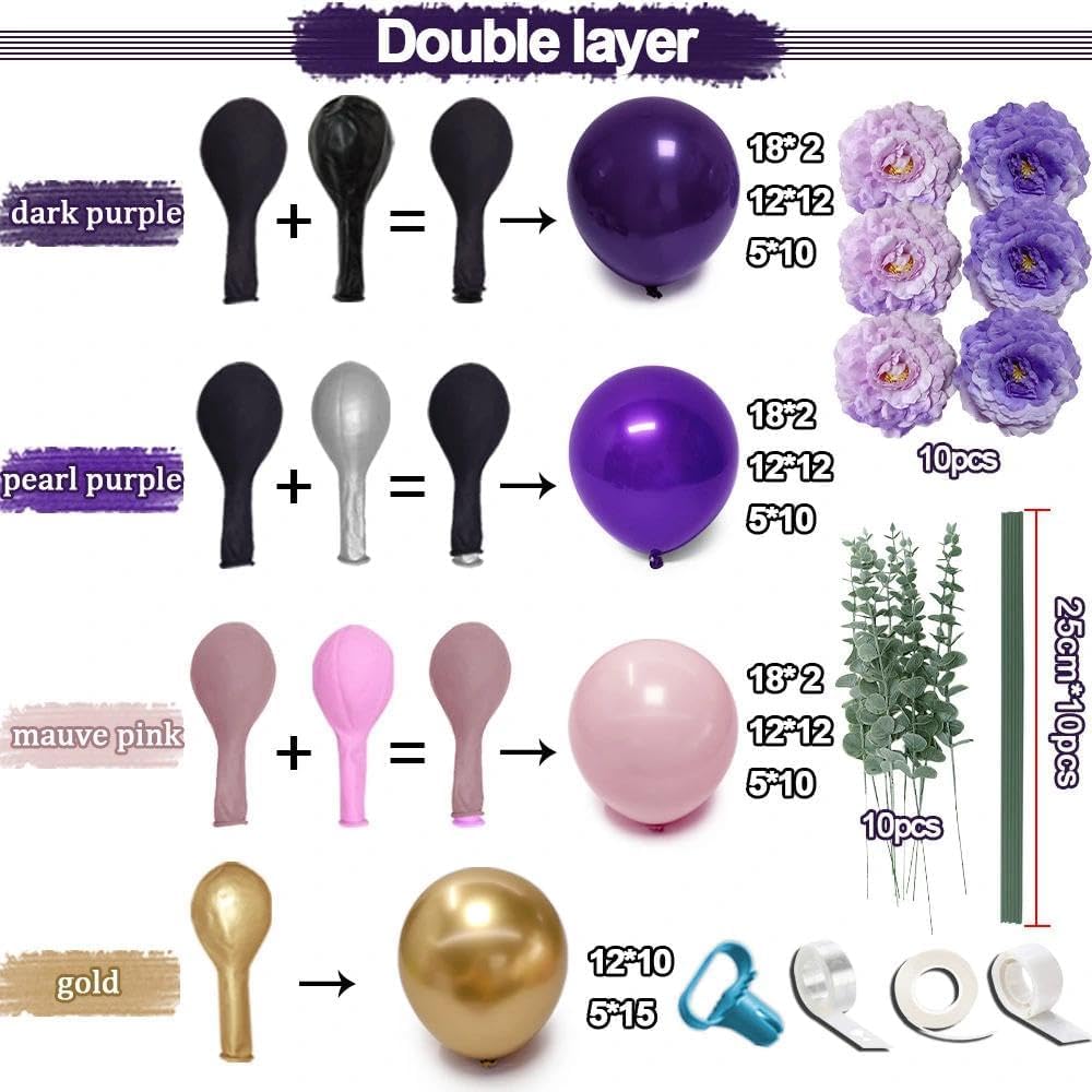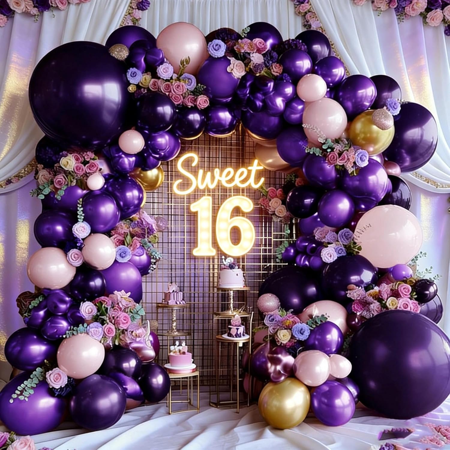 | Included Components | Curling Ribbon, Glue, Purple Artificial Flowers, Dark Purple Balloons, Royal Purple Balloons, Sweet 16 Balloons, Metallic Purple Balloons, Metallic Gold Balloons, Pastel Purple Balloons, Purple Balloons |