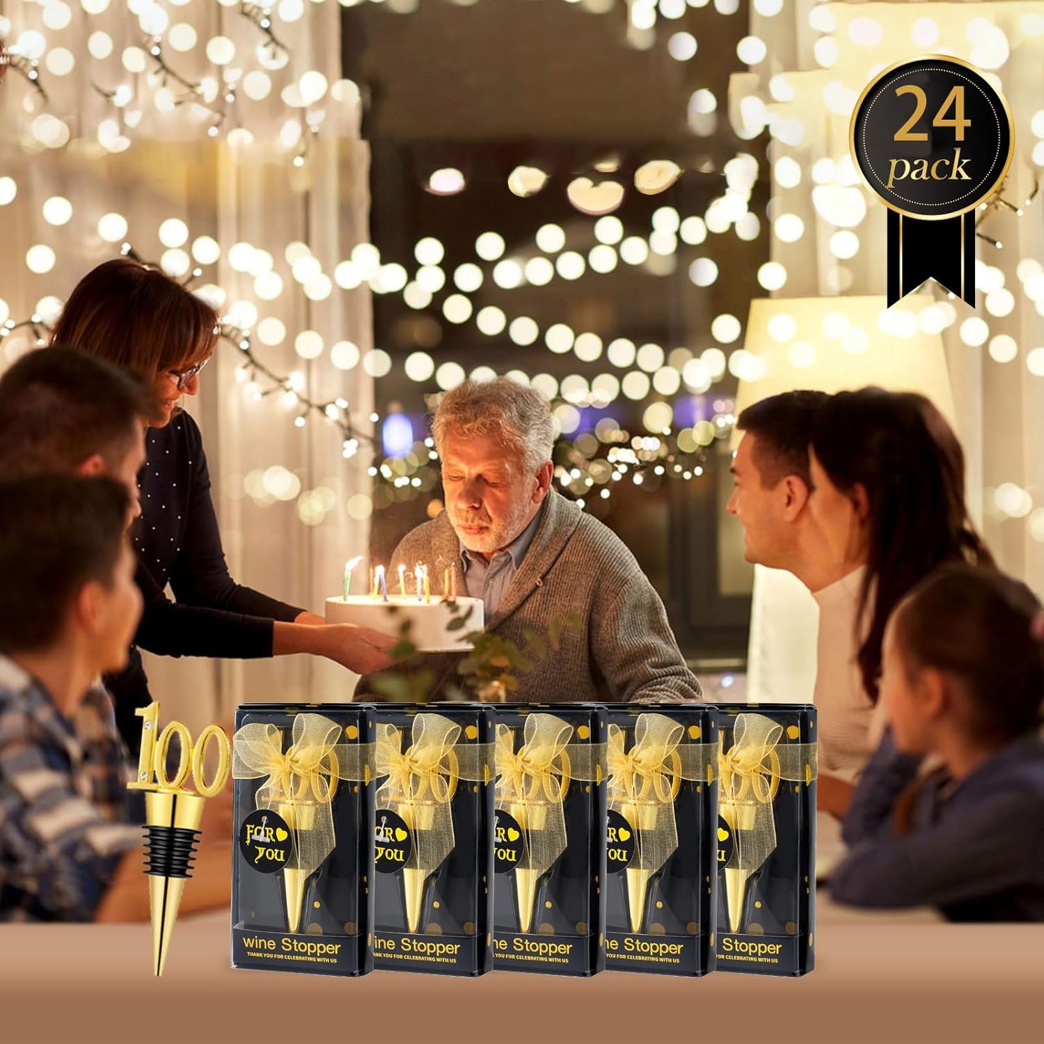 24 Pack 100th Birthday Party Favors 100 Years Old Wine Stopper for 100th Wedding Anniversary Party Souvenrs, Black and Gold Theme Birthday Party Gifts Decorations for Guests (24, Black 100)