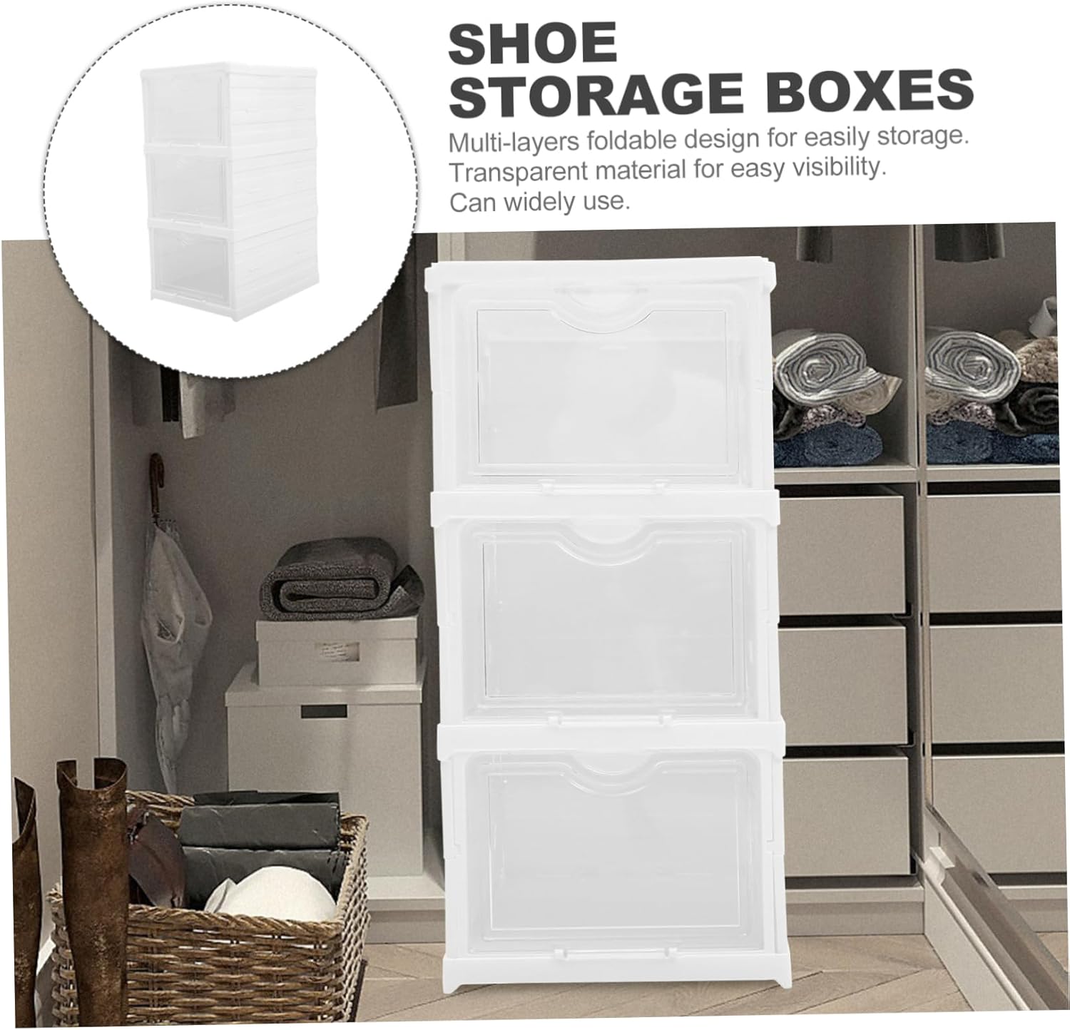 Package Include 1 x set of shoe storage box Characteristics -Size:52.50X34.50X25.50cm/20.63X13.56X10.02in Shoe Container Stackable -Color:White Stackable Shoe Storage -Material:PP Shoe Cases - The multi-layer foldable design of this box saves space and makes it easy to find the shoes you need Shoe Storage Case. - Made of PP materials for durability and long-lasting use. Keep your shoes clean and in shape easily Shoe Boxes. - The drawer design allows for easy access to your shoes. The lid design protects your shoes Shoe Cabinet. - The transparent design of these shoes boxes will help you find your shoes easily and save time Sneaker Boxes. - Keep your shoes organized and tidy with this transparent shoe storage box container, very useful Shoe Boxes Stackable.Goods InformationOrganizer For Cabinets The simple design allows you to easily identity the contents inside.Shoe Storage Boxes This multipurpose shoes storage box is stackable, great box for shoes storage.Shoe Cabinet Suitable for placing in home, store, hotel, etc.Shoe Storage Case Keep your shoes organized and tidy with this transparent shoe storage box container.Shoe Containers It can , stains, etc