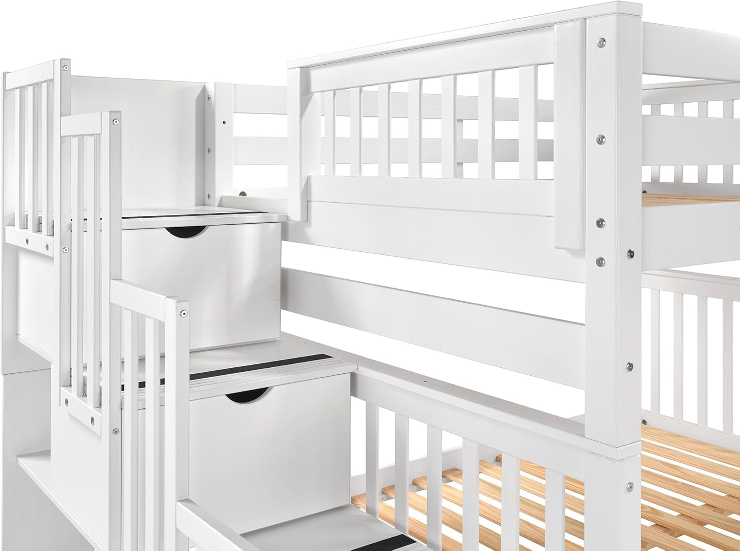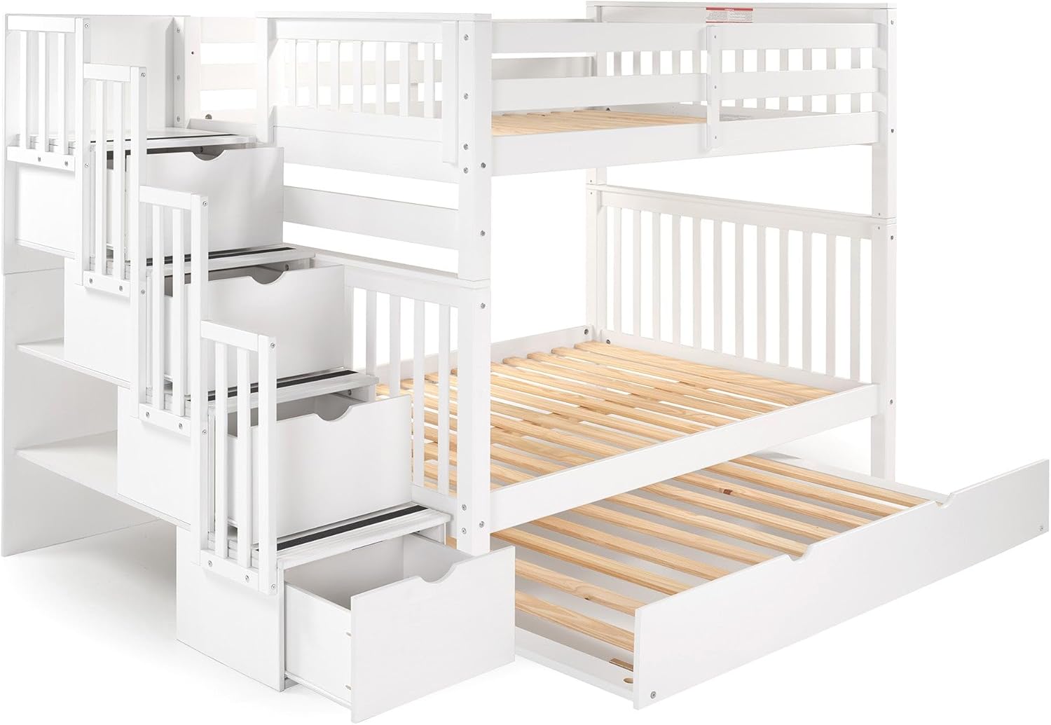 | Set Name | Bedz King Stairway Bunk Beds Full over Full, 4 Step Drawers, Twin Trundle, White |