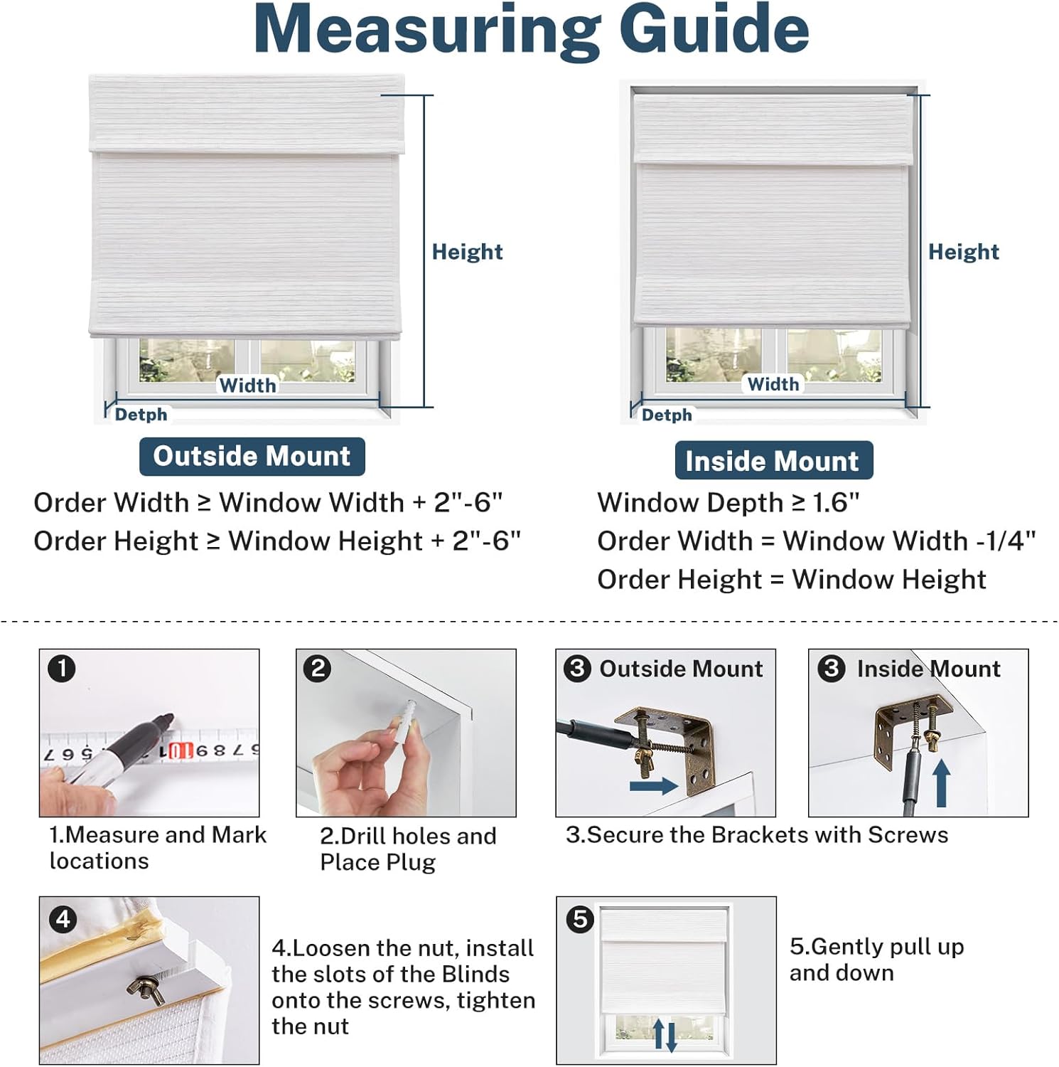 Natural Woven Fabrics: The fabrics of our cordless roman shades meticulously handwoven by artisans with natural materials, each of them carries the influence of its different origin and climate, resulting in distinctive variations that makes them uniquely retro and elegantMore than Elegant: With different lining option, and different coverage degree, you could adjust cordless roman window shades from filtering light to 105% blackout as you want. The blinds are designed for both thermal insulation, which contributes to energy efficiency. Cordless Design: Our cordless roman blinds are effortless to operate, and provide a safe environment for families with kids or pets. Effective room darkening for privacy or filtering sunlight for an inviting ambiance, making them a harmonious blend of style and function.Custom Service: Try to custom your unique roman cordless shades for windows! The "Custom Size" option allows you to select fabric type, lining option, and edge binding that align with your preferences. Create your personalized decor by adding various options, to enhance the decor style you prefer.
