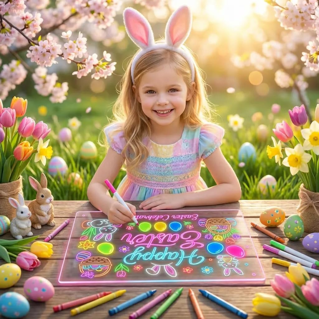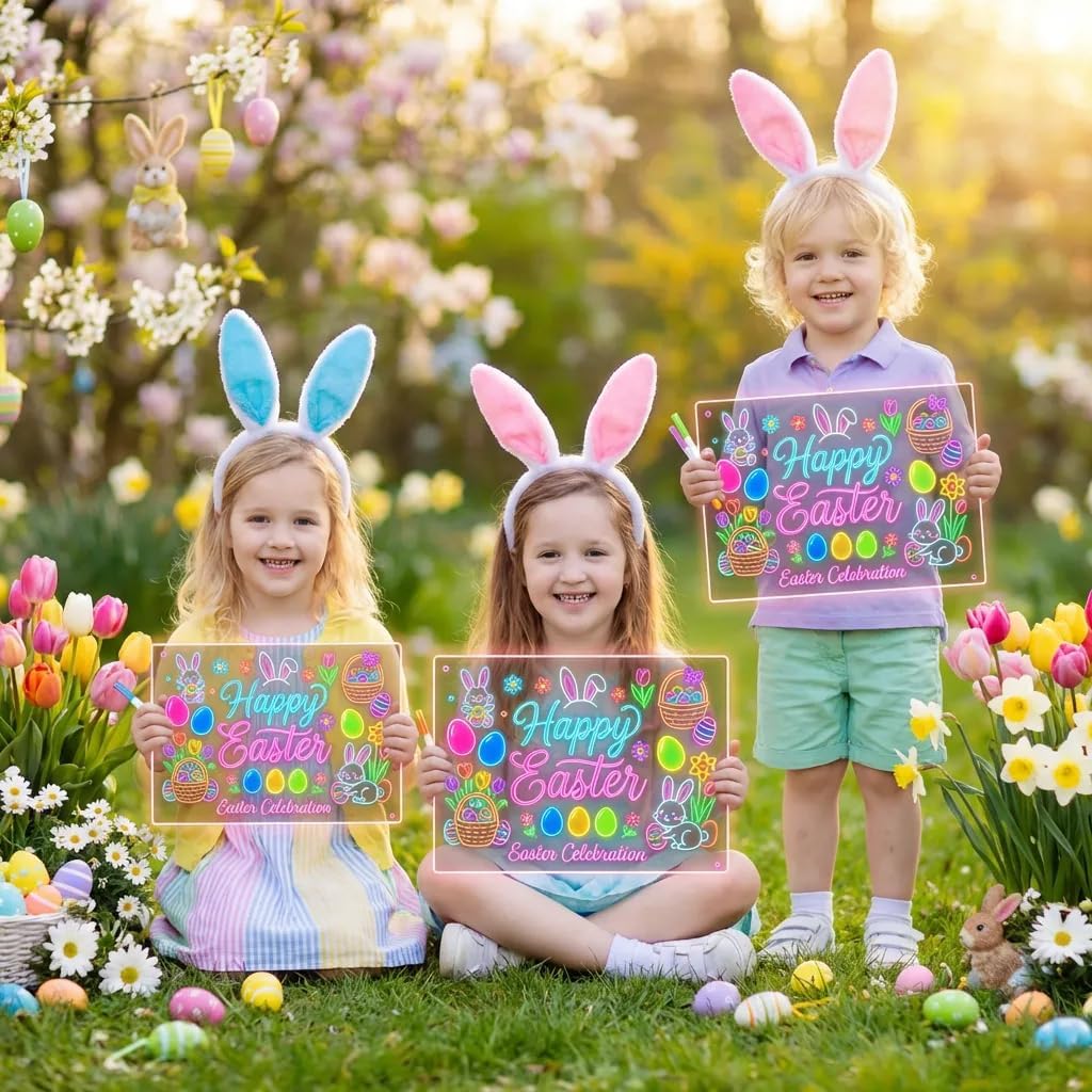 2PCS Led Note Board with 7 Colors,17“ Light Up Acrylic Cosmody Drawing Board,Easter Basket Stuffers for Kids Teen Girls Boys,Lumiboard Led Boards Easter Egg Fillers Party Favors Gifts