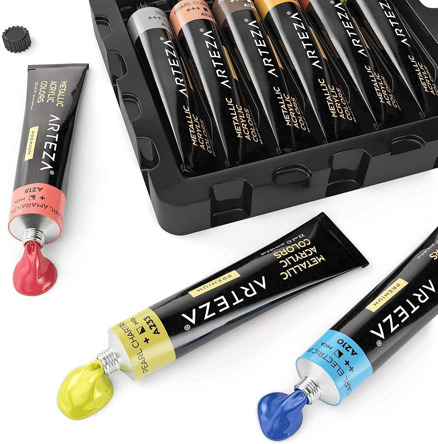 Arteza Acrylic, Metallic Acrylic Paint Set and Canvas Panels Multi Pack Bundle