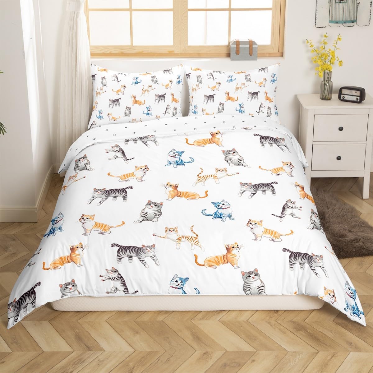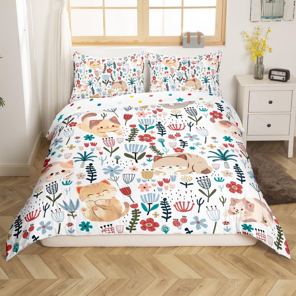 Package Include Duvet Cover and Pillowcases Duvet Cover Set Pattern Bedding Set,Simply Decorating Your Rooms Any Time You Want,Bringing You Fresh Feel for Year Round Use. Material Made From Polyester Microfiber,The Duvet Cover Offers a Noticeably Soft Hand Feel. Size Information Toddler Size 2Pcs Duvet Cover Set:1 Duvet Cover 42"x58", 1 Pillowcase 20"x30", without Comforter. Twin Size 2Pcs Duvet Cover Set:1 Duvet Cover 68"x90", 1 Pillowcase 20"x30", without Comforter. Full Size 3Pcs Duvet Cover Set: 1 Duvet Cover 79"x90", 2 Pillowcase 20"x30", without Comforter. Queen Size 3Pcs Duvet Cover Set:1 Duvet Cover 90"x90", 2 Pillowcase 20"x30", without Comforter. King Size 3Pcs Duvet Cover Set:1 Duvet Cover 104"x90", 2 Pillowcase 20"x36", without Comforter. Personalize Your Bedroom Beautiful Design and Colorful Print,Makes Your Bedroom Unique and Brings You a Wonderful Dream. Washing Instructions Machine Wash Separately In Cold Water,Hang Dry,Do Not Bleach. Occasion The Cute Soft Duvet Cover Bedding Sets Designed for Children,Adult,Men,Women,Teens. This Duvet Cover Set Is Also Suitable for Full Seasons,Spring,Summer,Autumn and Winter. For Your Family and Friends.