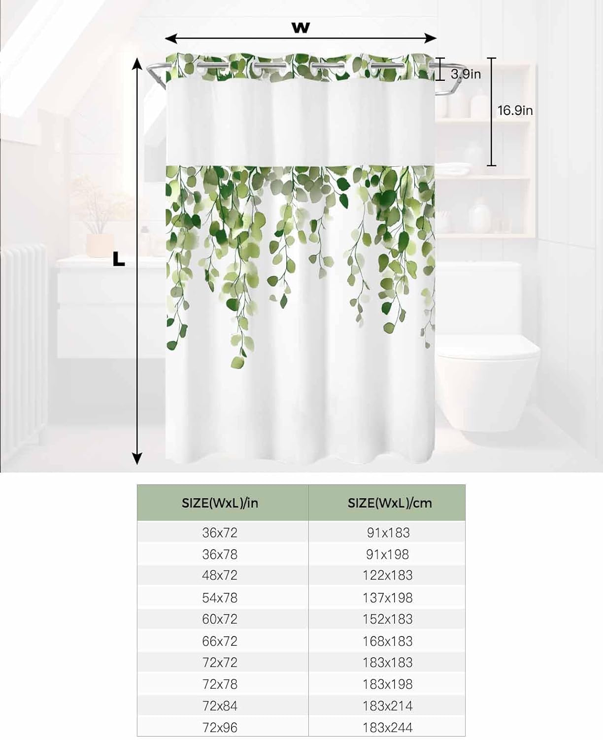 Top Transparent Window Shower Curtain -- Create A Spa Shower ExperienceDouble Shower Curtain InformationMaterial: High quality polyester fabric, soft to the touch, long-lasting.Features: The surface has a waterproof function, promoting the formation of water droplets that quickly roll off the surface, and can dry quickly to keep your floor clean.Design: With an "open ring" design, it's easy to install without a hook, allowing you to hang and slide smoothly.Size:36x72 inches (about 91x183cm)36x78 inches (about 91x183cm)48x72 inches (about 127x183cm)60x72 inches (about 157x183cm)66x72 inches (about 168x183cm)72x72 inches (about 183x183cm)72x84 inches (about 183x244cm)72x96 inches (183x244cm)Top Sheer WindowThe top of our shower curtain has a translucent mesh design that lets in natural light and keeps air flowing. Double shower curtains can also maintain privacy and create a soft and comfortable shower experience.Snap-in LinerA stylish snap-in Liner shower curtain with a high-quality waterproof surface that can be easily removed for easy replacement and saves you time. It can be paired with personalized styles and patterns to add a sense of fashion.Luxury Hotel Style ExperienceOur double shower curtains have the elegant and stylish feel of a luxury hotel and are perfect for family, friends or holiday gifts.Such as on the Fourth of July Independence Day, Christmas, Valentine's Day, birthday parties, holiday party, family banquets and other occasions, become elegant embellishment.Waterproof Shower CurtainWe adhere to the concept of creating high-quality shower curtains, so that you have a better shower experience, if you have any questions, please feel free to contact us, we will give you a satisfactory answer within 24 hours.