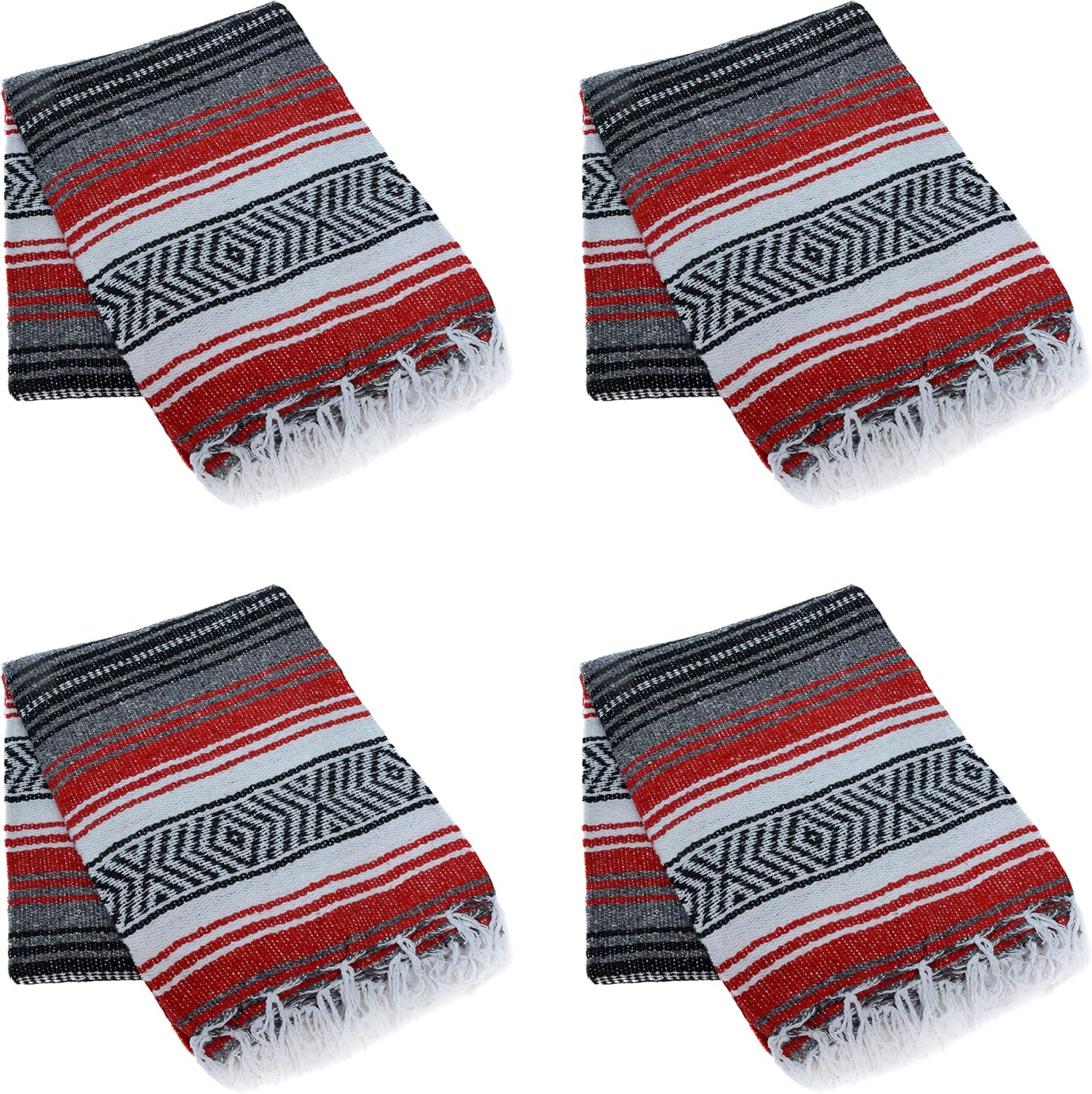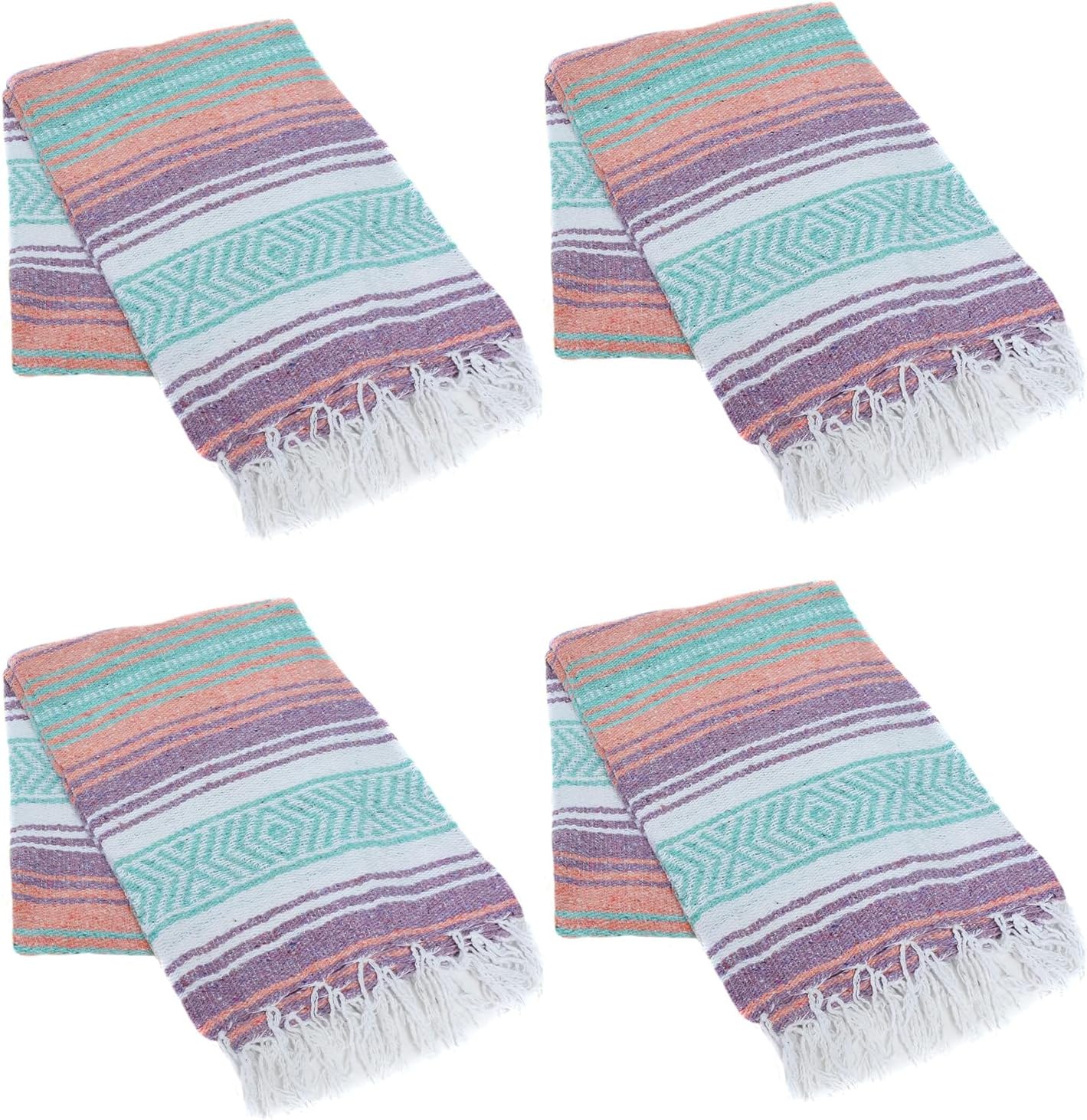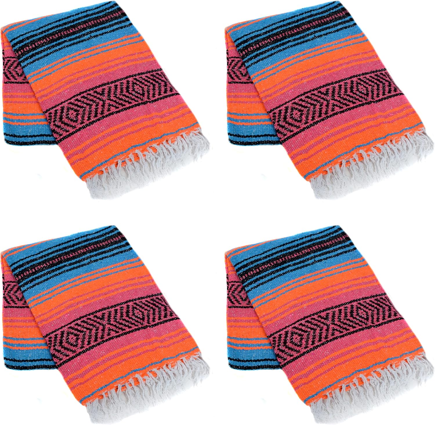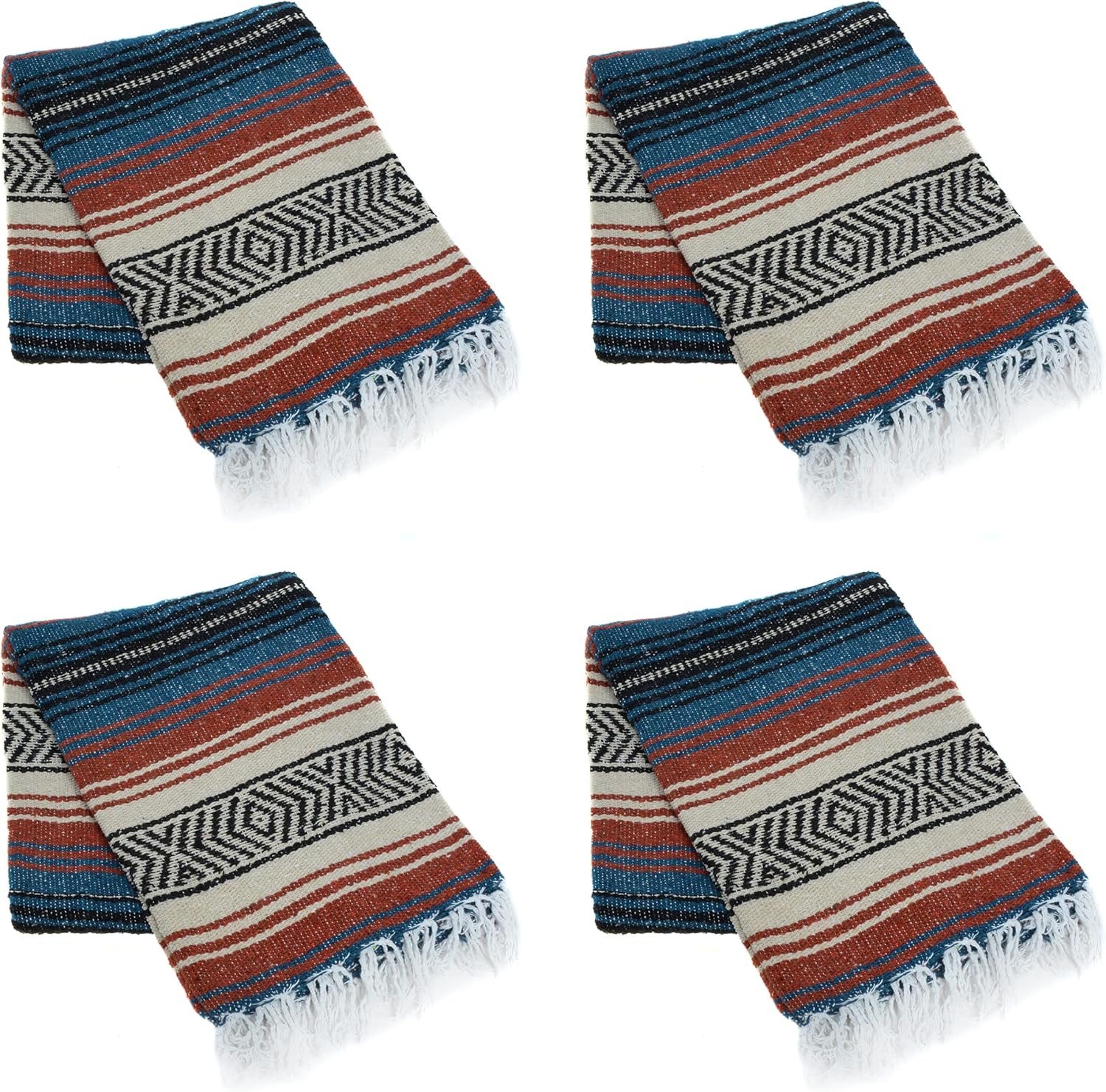 By weaving from a recycled fiber blend of cotton, acrylic, and polyester, the La Montana Mexican Blankets offer a conscious and affordable option that serves as a versatile prop for workouts, recreation, or relaxation. This authentic Mexican blanket weighs 10 percent more than regular yoga blankets to provide exceptional warmth to your body and support while trying out challenging poses when flexibility is limited. You can fold the yoga blanket lengthwise and then roll it up in place of yoga blocks or bolsters so that you can focus on your practice by carrying fewer accessories. Our woven blanket is made in Mexico with a traditional Falsa blanket design and gets softer and fuller with each wash. To clean, launder the classic thick Mexican blanket in warm or cool water, then tumble dry with low heat. Due to the authentic weaving process, the yoga blanket may have loose strings that can be removed with scissors. The bulk pack contains 4 outdoor blankets measuring 74 x 50 inches each and can be used outdoors as picnic, beach, or camping blankets or to keep you cozy as a sofa or throw blanket. With a selection of beautiful color combinations, the La Montana Mexican Blankets will let your personality shine with a versatile accessory for home or studio use.
