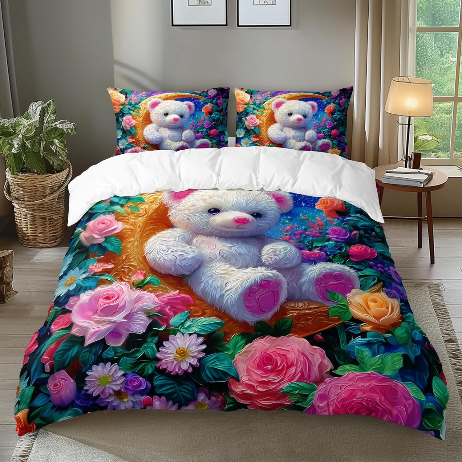 | Included Components | Upgrade your bedding with our stunning digital print duvet cover set! This set includes one duvet cover and two pillowcases, all made from high-quality microfiber fabric that feels soft and luxurious against your skin. Our unique print designs are created using advanced digital printing technology, ensuring that the colors and patterns are vibrant and long-lasting. The contemporary patterns and bright colors of our bedding set will add a pop of style to any bedroom decor. Don't settle for boring bedding – choose our digital print duvet cover set for a comfortable and stylish sleep experience! |