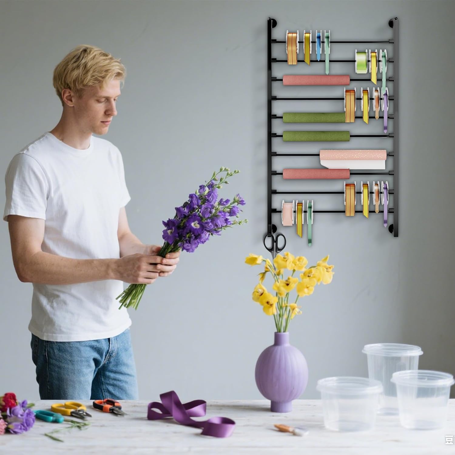 Keep your crafting area tidy and efficient with this wall-mounted ribbon organizer and storage rack. Designed with 7 or 10 removable bars, it allows you to store, display, and access a variety of ribbons, spools, towels, threads, and scarves with ease. Crafted from durable metal with a sleek baking paint finish, this rack is lightweight, waterproof, and built to last. Its space-saving wall-mounted design makes it perfect for craft rooms, wrapping stations, and DIY workshops. Whether you're a professional crafter, sewing enthusiast, or just love organizing, this multi-tier ribbon holder is your ideal storage solution. Great for gift wrapping supplies, embroidery threads, or holiday crafting, it brings function and style to any space.