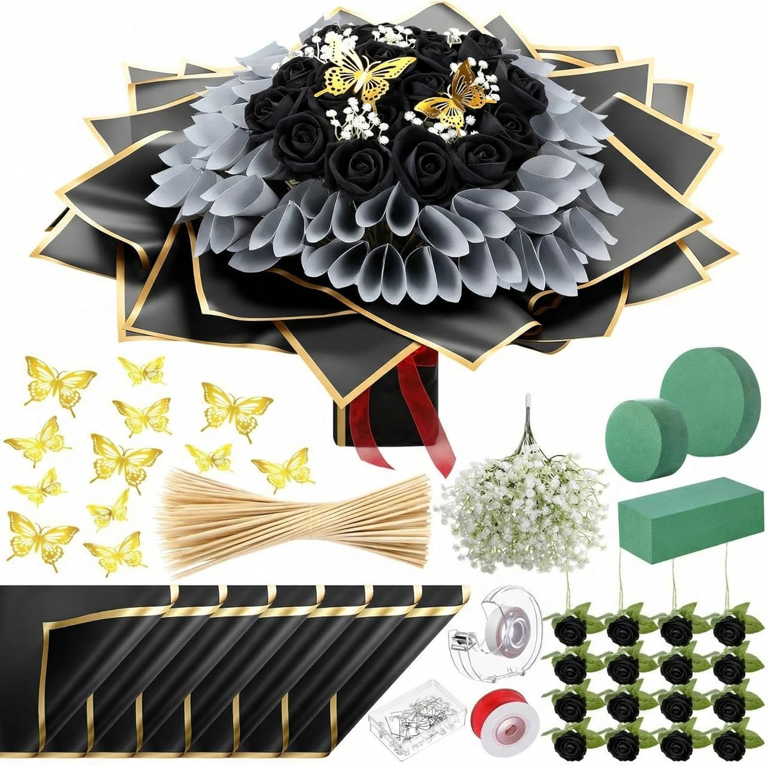 Features: Offering exceptional value, this bouquet kit is not only budget but also reusable. Ideal for multiple occasions, you can create striking arrangements time and again Elevate your gift giving with the money bouquet kit, designed to simplify the art of flower arrangement. Specifications: Fake flowers: Material: flannel Color: purple Size: about 19.7 x 2.8 inches/ 50 x 7 cm and 11.4 x 4.7 x 1.6 inches/ 29 x 12 x 4 cm Wrapping paper: Material: paper Color: purple and gold Size: about 22 x 22 inches/ 56 x 56 cm Package includes: 36 x Fake flowers 20 x Wrapping paper 100 x Bamboo skewers 50 x Pins 12 x Butterflies 3 x Floral foam blocks 1 x Ribbon, tape and cutting tool Notes: Manual measurement, please allow slight errors on size. The color may exist a slight difference due to different screen displays