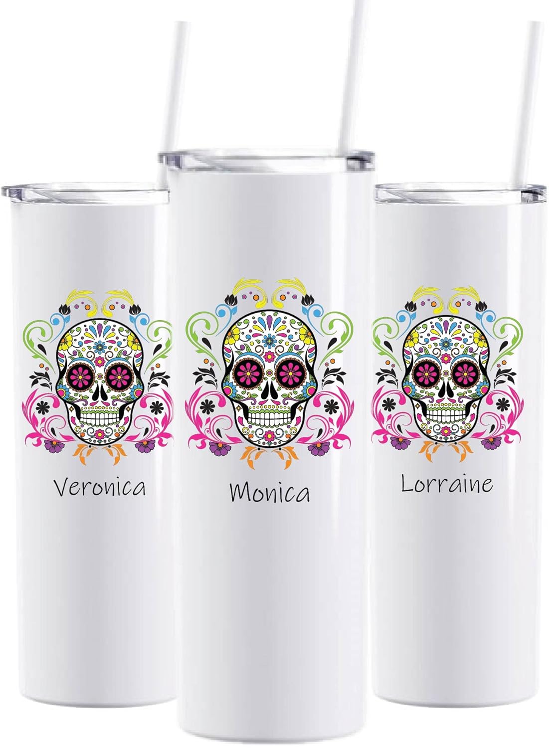Each tumbler is personalized by heat-pressing your desired text and design on the surface of the tumbler. Our tumblers are vacuum insulated stainless steel, so they keep drinks hot or cold for hours. Includes a straw and lid.