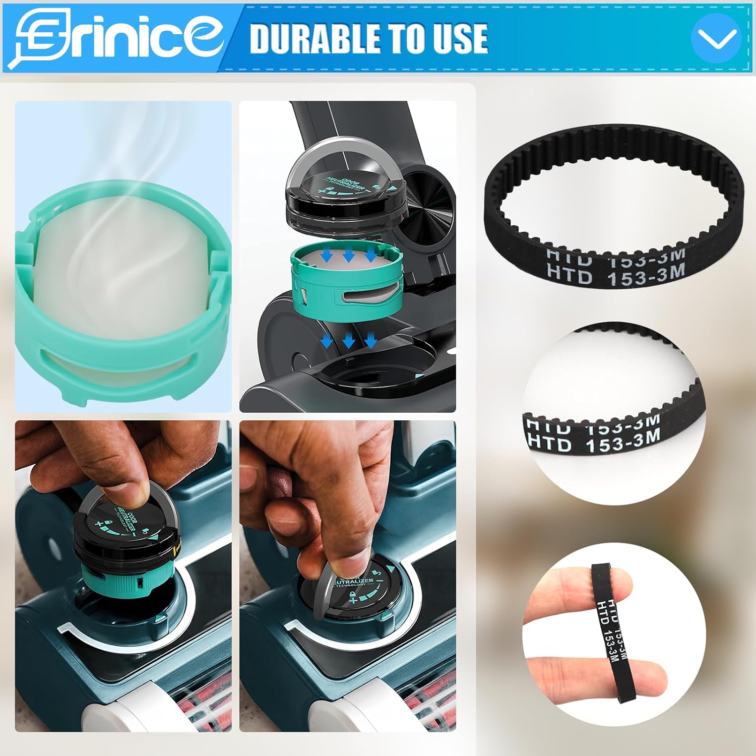 | Included Components | 1pc soft brush roller, 2pcs belts, 2pcs post-motor filters, 4pcs odor neutralizer replacement cartridges, 4pcs pre-motor foam & felt filters |