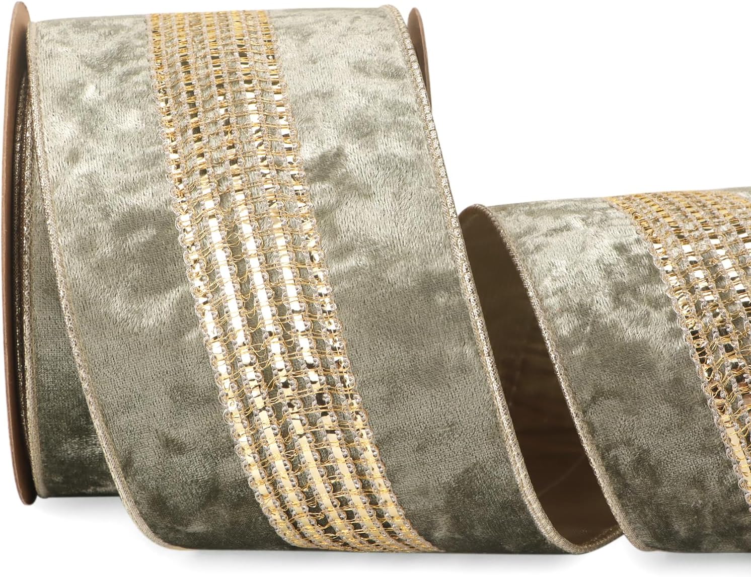Ribbli velvet wired ribbon with luxurious glittering foil stripe perfect for you to make DIY project: gift wrapping, big bow, wreath, Christmas tree decoration, indoor decoration, Christmas home decor, party decoration. velvet ribbons are essential for the Christmas season.