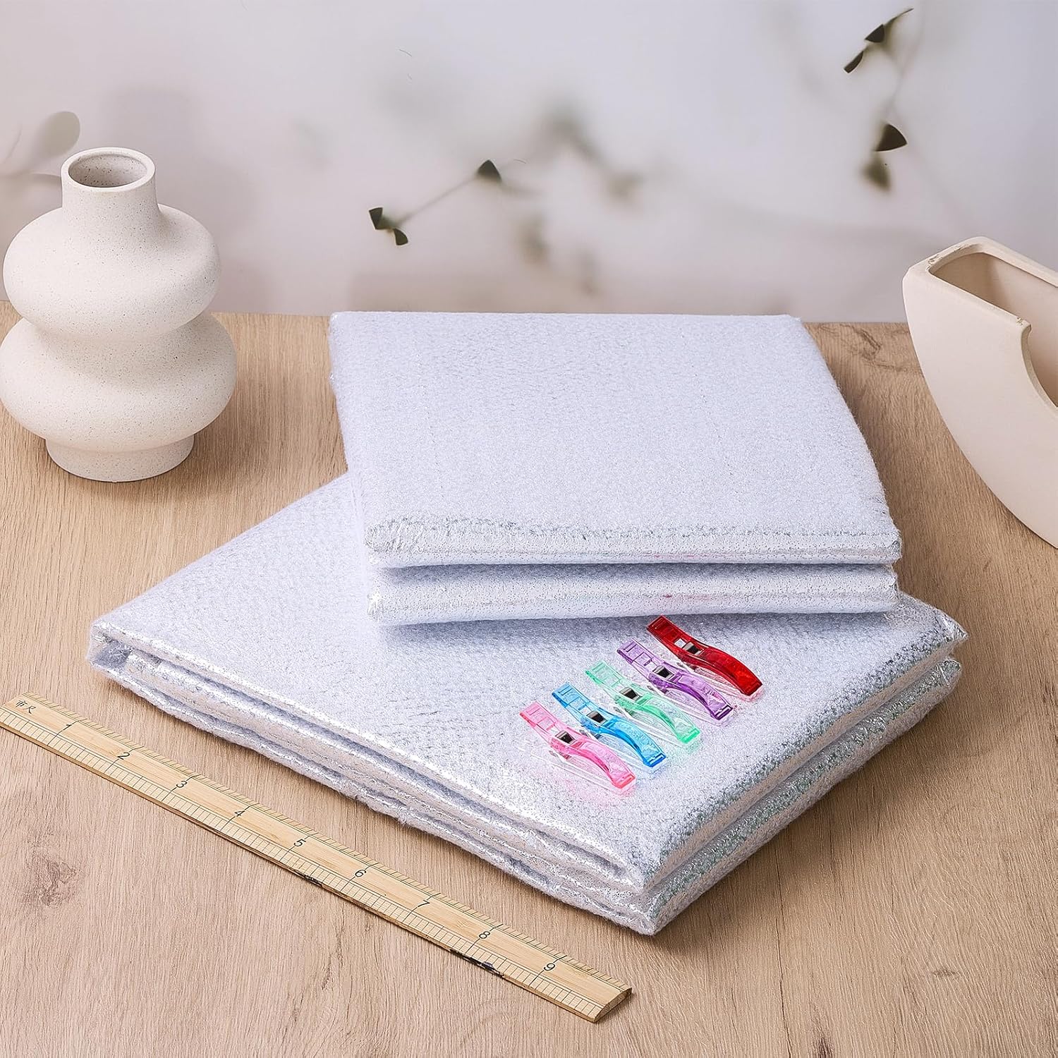 Features: This bundle provides all the tools needed for sewing heat-resistant projects, making it ideal for both beginners and experienced quilters Liners is easy to work with, machine washable, and provides reliable insulation for long-lasting craft projects. Specifications: Material: aluminum film needle-punched cotton Color: multicolor Size: about 45 x 60 inches Package includes: 4 x Insulation liners 30 x Sewing clips Notes: Manual measurement, please allow slight errors on size. The color may exist a slight difference due to different screen displays