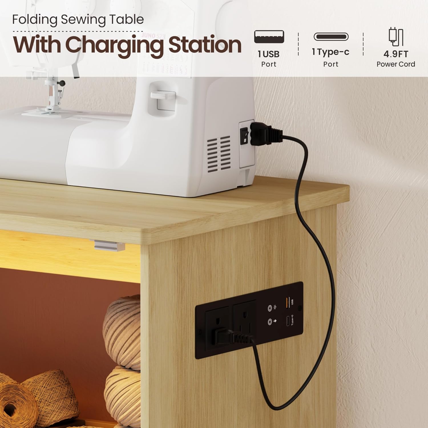 | Included Components | Folding Sewing Table, Power Strip with 2 AC Outlets and 2 USB Ports, Assembly Instructions |