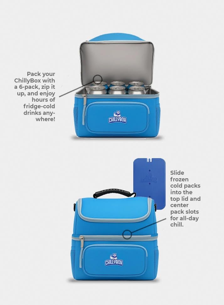 This XL lunch bag all adults will love keeps your food cool, below 39°F for up to 7 hours. Our Chillybox XL will have you thinking outside the box. The patented Rigid Re-Freezable Tray is the secret to keeping meals fresh and safe in our oversized tote. Designed with advanced cooling technology, the insulated Chillybox XL maintains optimal temperatures longer, ensuring food stays fresh and ready when you are. Reusable, durable, and easy to clean, it’s perfect for everyday use. Seal in freshness with the included extra-large plastic storage container that keeps food organized and cooler inside the insulated chamber. The XL insulated design keeps your meals chilled, while durable, easy-to-clean materials make it ideal for any schedule. The re-freezable insert ensures contents stay cold evenly on all sides, keeping your oversized lunch bag consistently chilled. Whether for long workdays, summer beach trips, or outdoor adventures, the Chillybox XL delivers the space and cooling power you need. For over 7 hours, food stays below 40°F-important since bacteria grows rapidly above that point.The rugged nylon carrying case makes the Chillybox XL a must-have for those always on the move-on the job, traveling, or spending time outdoors. Designed with both style and functionality in mind, this extra-large lunch bag keeps meals cool, crisp, and safe for hours, whether it’s a hearty lunch or a full day’s snacks. We don’t do hot, we do cool. And with the Chillybox XL, your food stays chill and fresh no matter the adventure. Please hand wash the Rigid Re-Freezable Tray or Insert-do not put in the dishwasher.