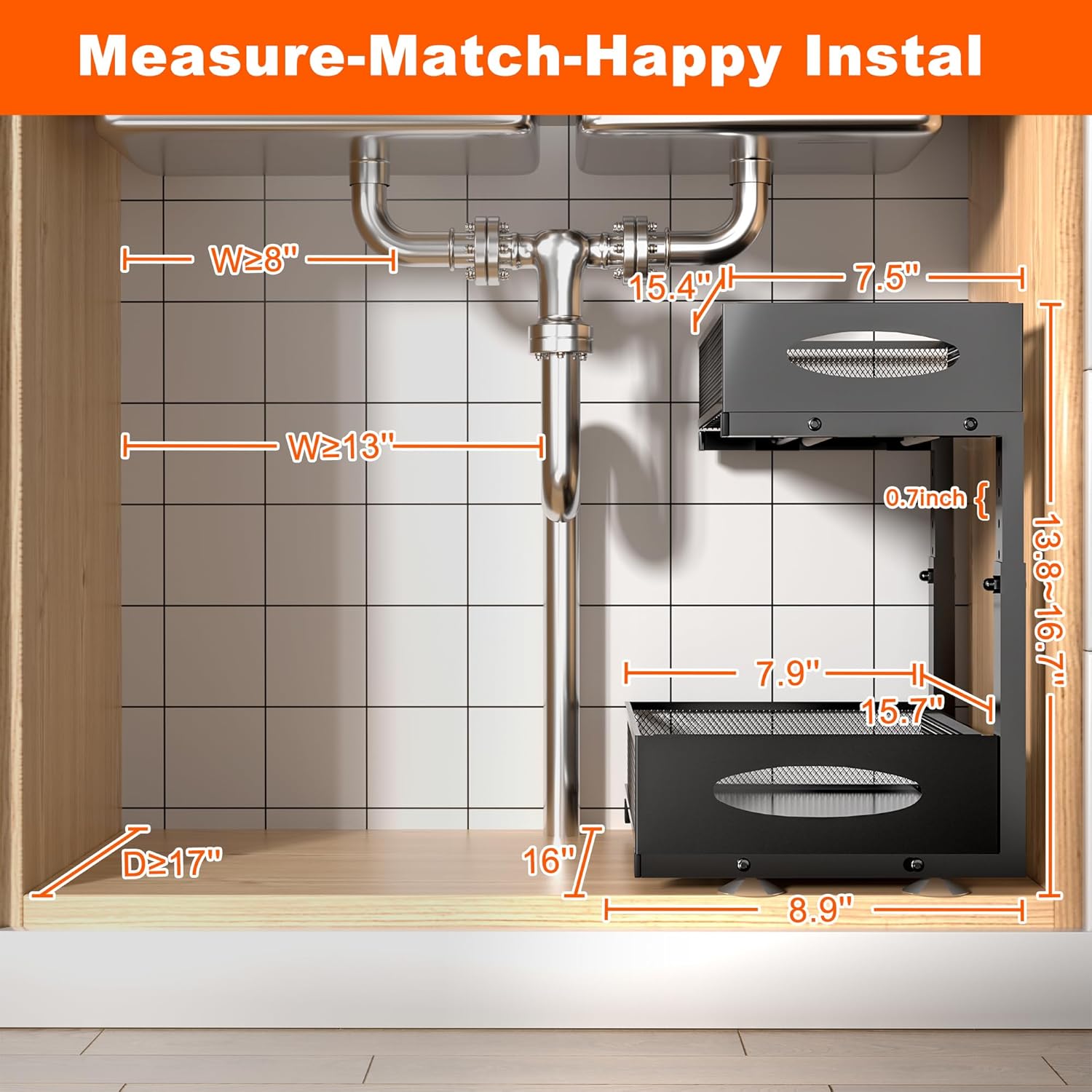 | Included Components | 2 Under Sink Organizers, 4 Suction Cups and 2 Nano Tapes, Assembly Instruction, Hardware |
