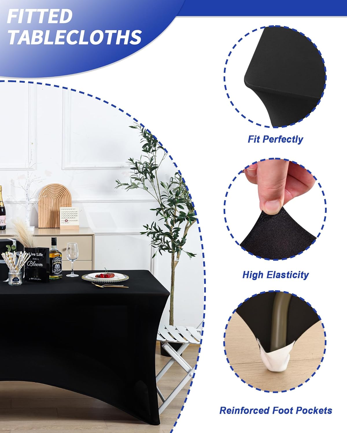 Fixwal 18 Pack Black Bulk Tablecloths, 6FT Spandex Table Cover Fitted Rectangular Tablecloth Resistant Stretch Rectangular Patio Table Cover for Event, Wedding, Banquet, Party