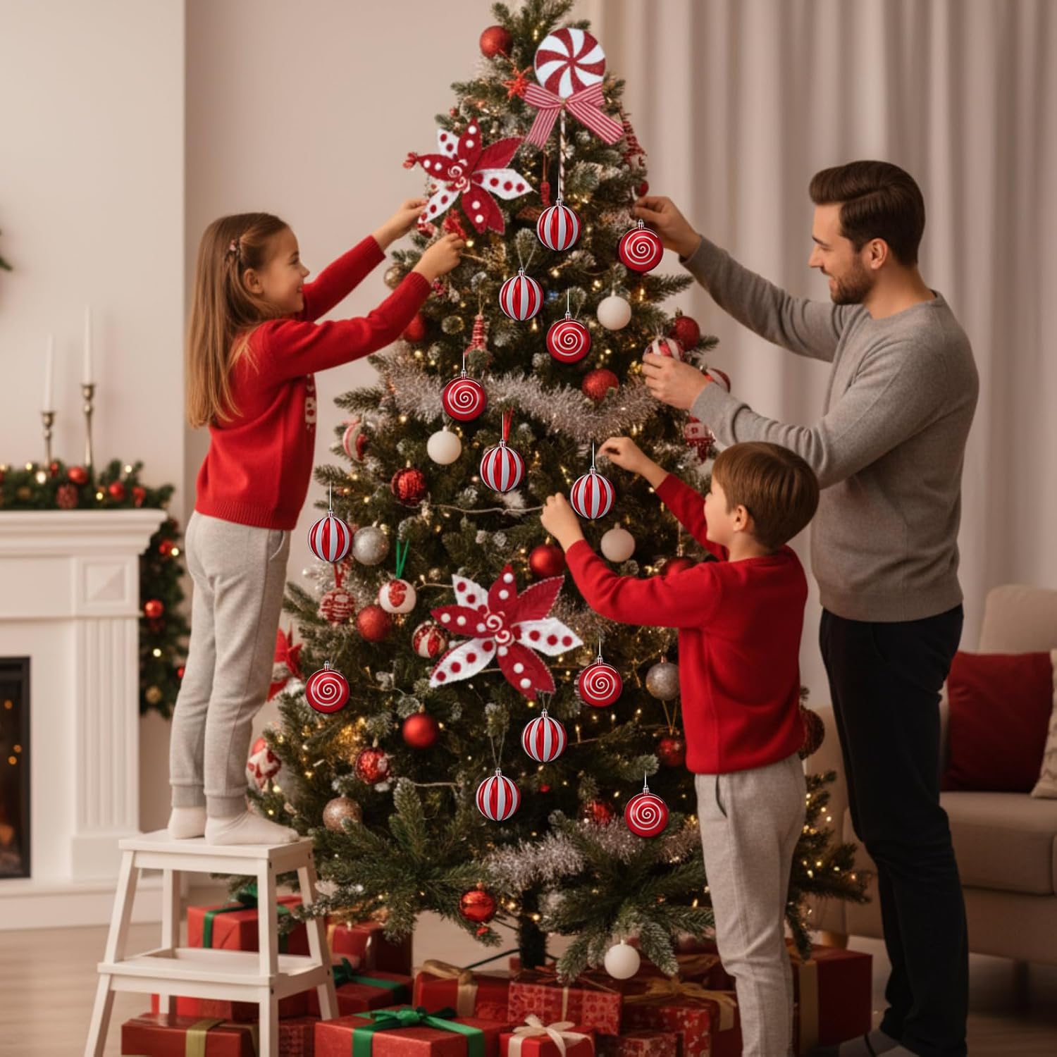 Features: Materials All ornaments are crafted from ideal materials. Particularly suitable for families with children and pets, worry free holiday decorating enjoyment. Easy Installation and Use Each ornament is easy to install, these user friendly Christmas decorations save valuable time during busy holiday preparation, making the decorating process enjoyable and stress free. Specifications: Material: foam, plastic, flannel, iron wire and wool Color: red white Size: 3.1" Christmas balls 20.5"x8.7" candy bouquets 9"x3.1" lollipop decoration Package includes: 6 x Christmas balls 6 x Candy bouquets 6 x Artificial flowers 6 x Decorated candy canes Notes: Manual measurement, please allow slight errors on size. The color may exist a slight difference due to different screen displays