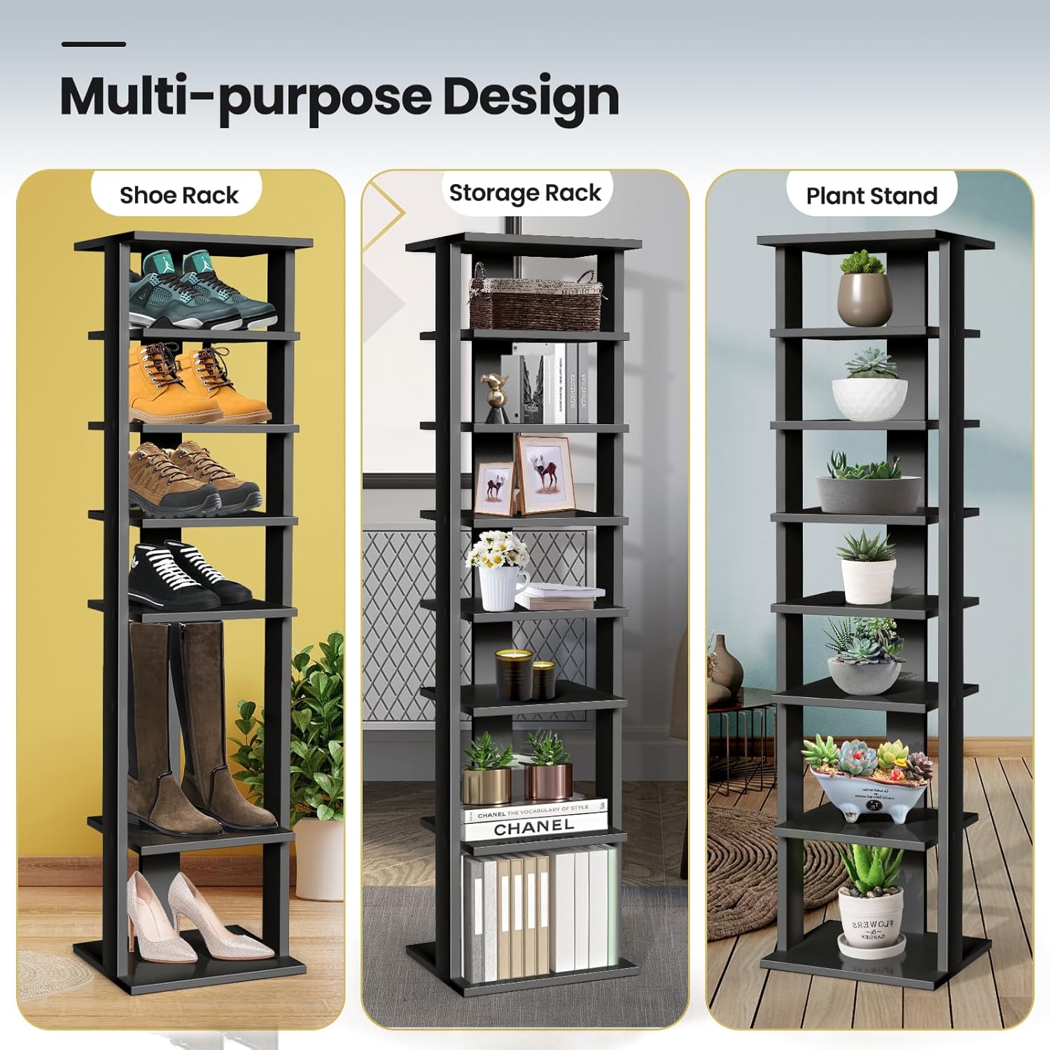 Description:Organize your entryway with ease and style using this vertical shoe rack. Say goodbye to cluttered floors and hello to a tidy and efficient storage solution! With shelves of varying heights, this sleek shoe tower can accommodate all styles of footwear, while a removable shelf creates extra space for your beloved boots. Designed to fit into tight corners, it maximizes storage without sacrificing valuable floor space. With a sturdy construction, the show rack can support up to an impressive weight! Not just for shoes, it’s a versatile organizer perfect for storing bags, hats, plants, and accessories. Plus, assembly is a breeze and its smooth, waterproof surface makes cleaning a snap. Transform your entryway today!Features:Varied height shelves for different kinds of shoesRemovable shelf leaves there enough space for bootsNarrow and tall rack saves precious floor spaceEquipped with anti-tipping kit to prevent falling accidentsWide base with non-slip foot pads for enhanced stabilityServes well as a shoe rack or a plant standSuitable for entryway, living room or closetSpecification:Color: White/Rustic Brown/BlackMaterial: Engineered Wood, MDFOverall Dimension: 11" x 10" x 43.5"/28.5 x 25.5 x 110 cm (L x W x H)Dimension of Open Shelf: 10" x 9"/25 x 23 cm (L x W)Clearance from Each Shelf: 5", 7.5"/12.5 cm, 19 cmTotal Weight Capacity: 120 lbs/55 kgNet Weight: 15 lbs/7 kgPackage Includes:1 x Shoe Rack1 x Instruction