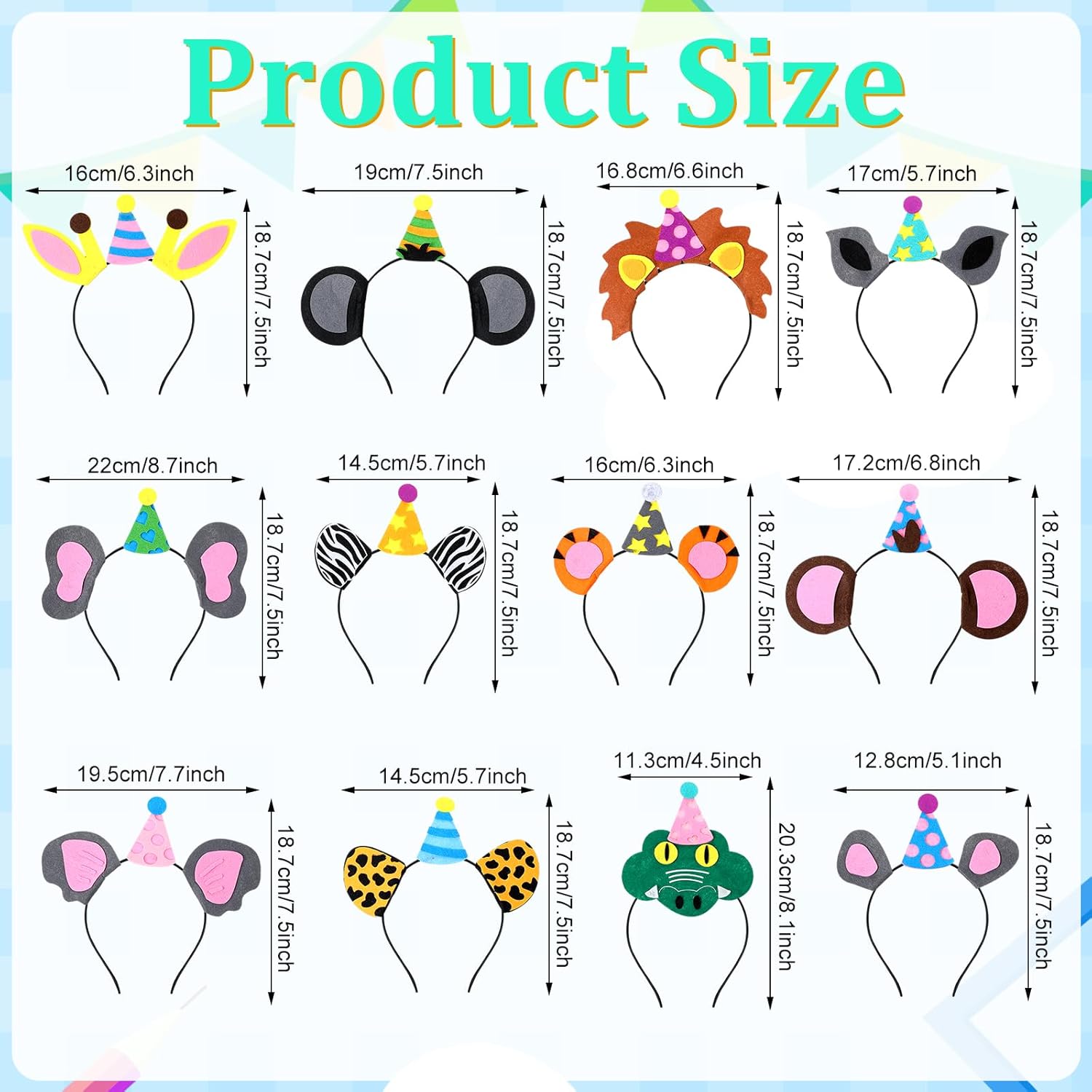 Features: Jungle Animal Designs: These birthday party felt headbands feature adorable jungle animal designs, including hippos, crocodiles, cheetahs, koalas, monkeys, rhinos, elephants, lions, giraffes, tigers, zebras, and chimpanzees, looking incredibly cute. The vibrant colors and lively designs will meet your needs and add a touch of brilliance to your safari-themed party Safe and Reliable Materials: Safari Zoo Party Headbands are made of felt and plastic, lightweight comfort, and durability. The vivid animal patterns add color to your wildlife-themed party Specifications: Material: felt, plastic Color: as shown in the figure Size: as shown in the figure Package includes: 24 x Birthday Jungle Animals Ears Headbands Notes: Manual measurement, please allow slight errors on size. The color may exist a slight difference due to different screen displays