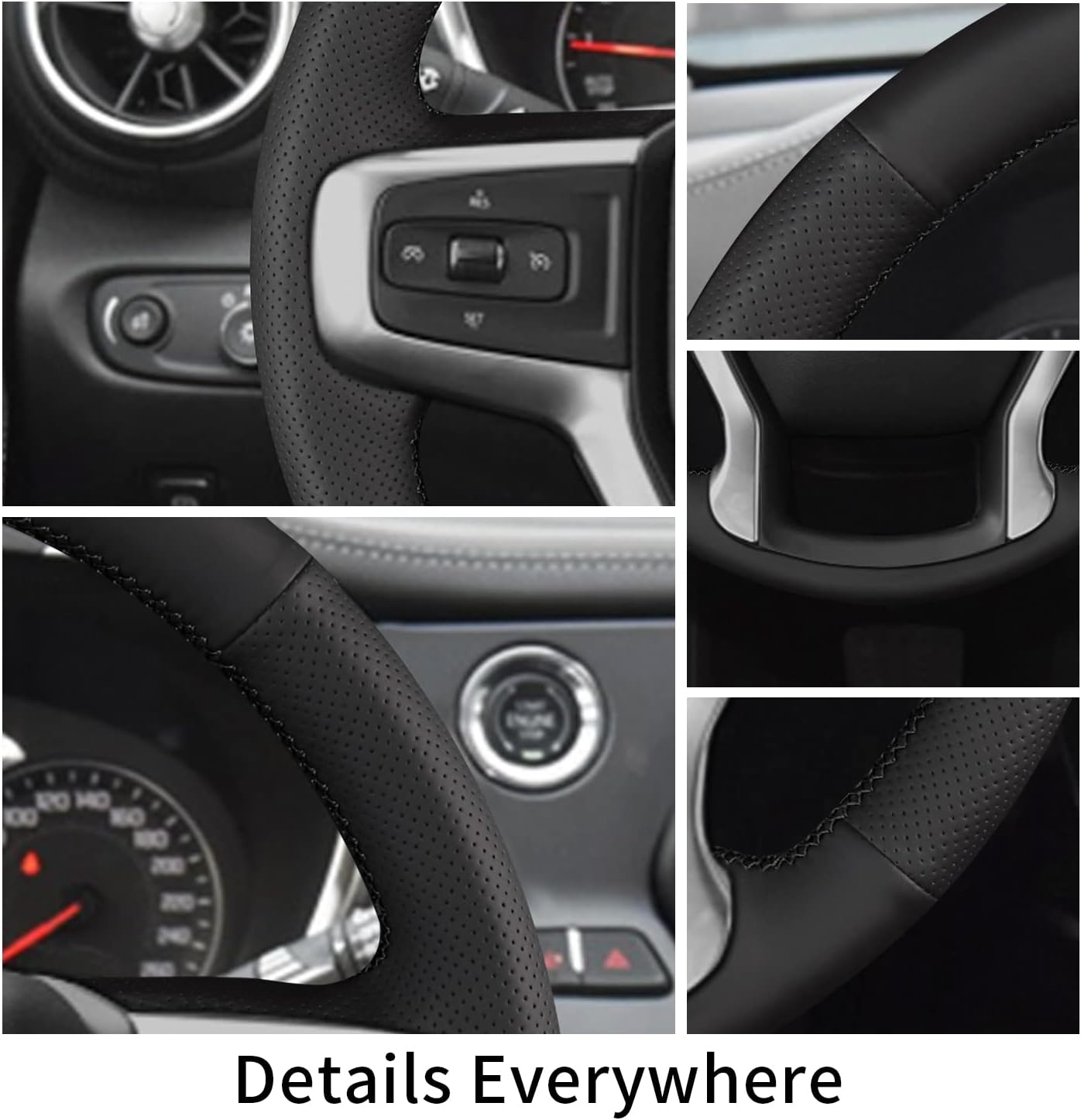 Yeolpise Hand Sewn Steering Wheel Cover Non-Slip Breathable Microfiber Leather Steering Wheel Cover wrap Car Interior Accessories,make every detail of the steering wheel be perfectly wrapped, just like the original factory. Features: 1. Perfectly fit the OEM steering wheel,make every detail of the steering wheel be perfectly wrapped. 2. Made of high-quality microfiber leather, non-slip, breathable and comfortable grip. Give your old steering wheel a new look. 3. Hand Sewing,It takes about 2-3 hours to sew by hand. There is no need to remove the steering wheel, stitching is done directly on the original steering wheel. Applicable Models: Replacement for Chevrolet (Chevy) Silverado 1500 2019-2024/Silverado 2500 2020-2024/Silverado 3500 2020-2024/Blazer 2019-2024/Suburban 2021-2024/Tahoe 2021-2024. Operation Steps: 1. Put on the steering wheel cover. Make sure the location is correct. In order to ensure that the stitching at the back is not crooked, the position where the leather meets is exactly at the center seam on the original steering wheel. 2. Affix double-sided tape to fix it. You can stick double-sided tape on the stitching on the inside of the leather. Be careful not to stick the double-sided tape on the edge, otherwise the edge may not fit into the gap. 3. Plug the edge. After positioning and sticking the double-sided tape, use the edge plug device to plug the exposed edge into the gap of the steering wheel, and pay attention to use different angles to plug the edge. 4. Hand stitching. Select a line that is 3-5 times the length of the sewing area, and then you can choose a starting point to stitch.