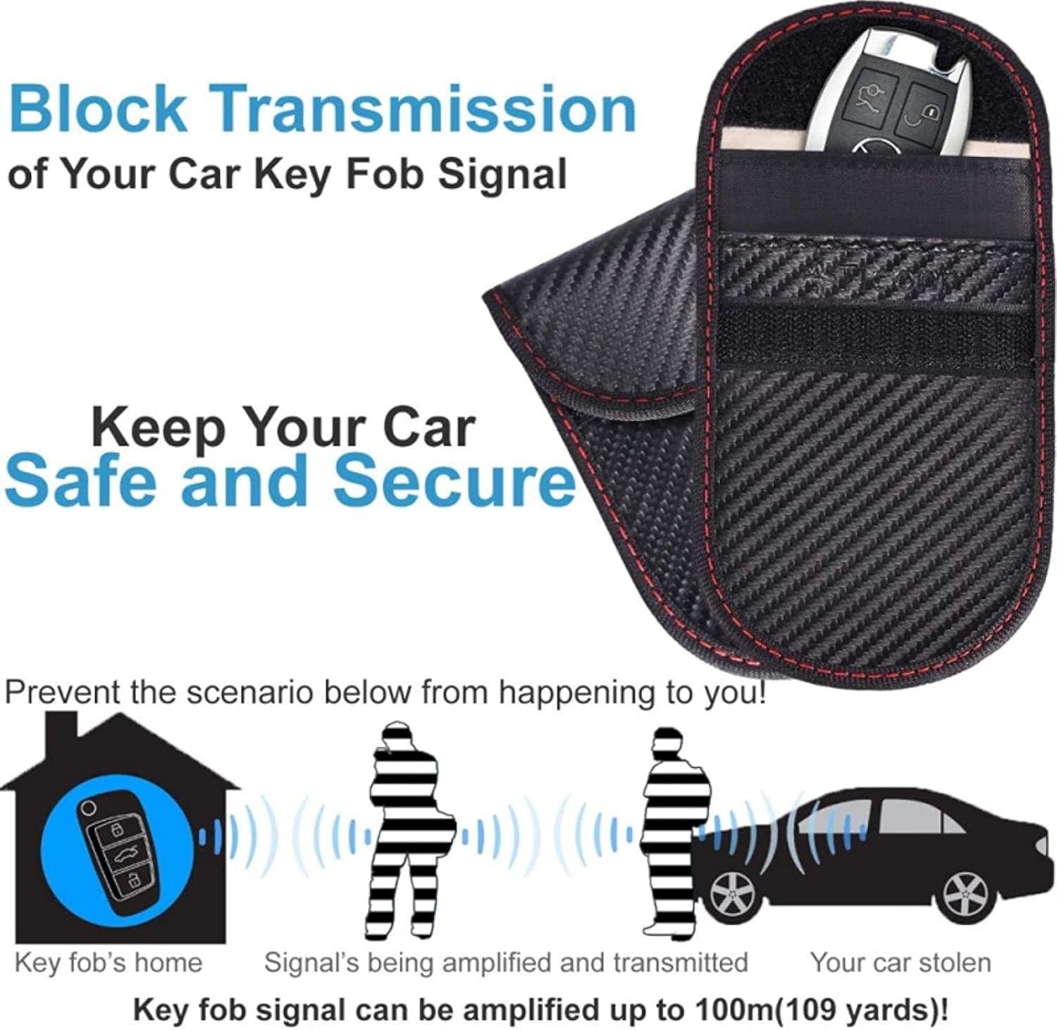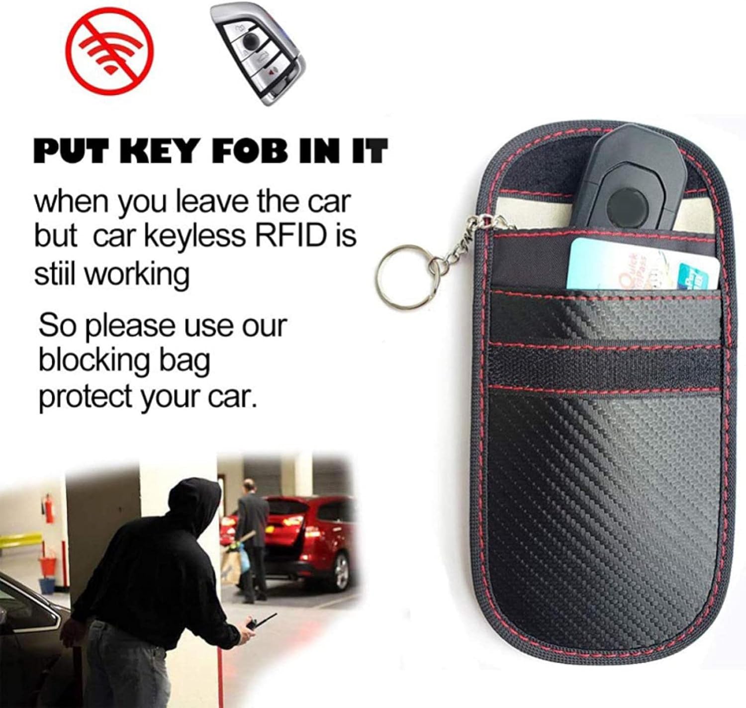 What's RFID Faraday Pouch? It is a structure that blocks the passage of radio signals. Thieves are now more sophisticated than ever, opening and operating your car without needing to break in. Using "signal amplification" to gain unauthorized access to your car, these thieves can steal your car with total ease. The is a car key security pouch gives you the protection you need! Features: Premium Material: Made of premium genuine leather, fashionable and durable. Featuring an inbuilt signal-isolating rfid Faraday cage lining, prevents RFID, NFC, Bluetooth and Wifi connectivity, to stop all frequency signals being sent or received by your car key. Safe Driving: The car key signal blocking pouch can 100% block key signal and prevent thieves simplifying your fob signal and opening your car. Easy to Clean: The faraday pouch surface is waterproof, please wipe it with a wet towel or tissue when it's dirty. In order not to damage its efficacy, please don't wash it. Specifications: Material: carbon fiber Color: Black Package Included: 1X Shielding bag Note: 1. Despite RFID protection, the cards are not close to magnetic place or items; 2. Please do not wash the bag, you can wipe it with towel or handkerchief; 3. Only the rear compartment ensures complete shielding. The front compartment is for storage only. Notes: 1. 1 inch = 2.54 cm 2. Please measure it yourself to choose the right size. 3. Due to the difference between the different displays, the picture may not reflect the actual color of the item. Thank you!