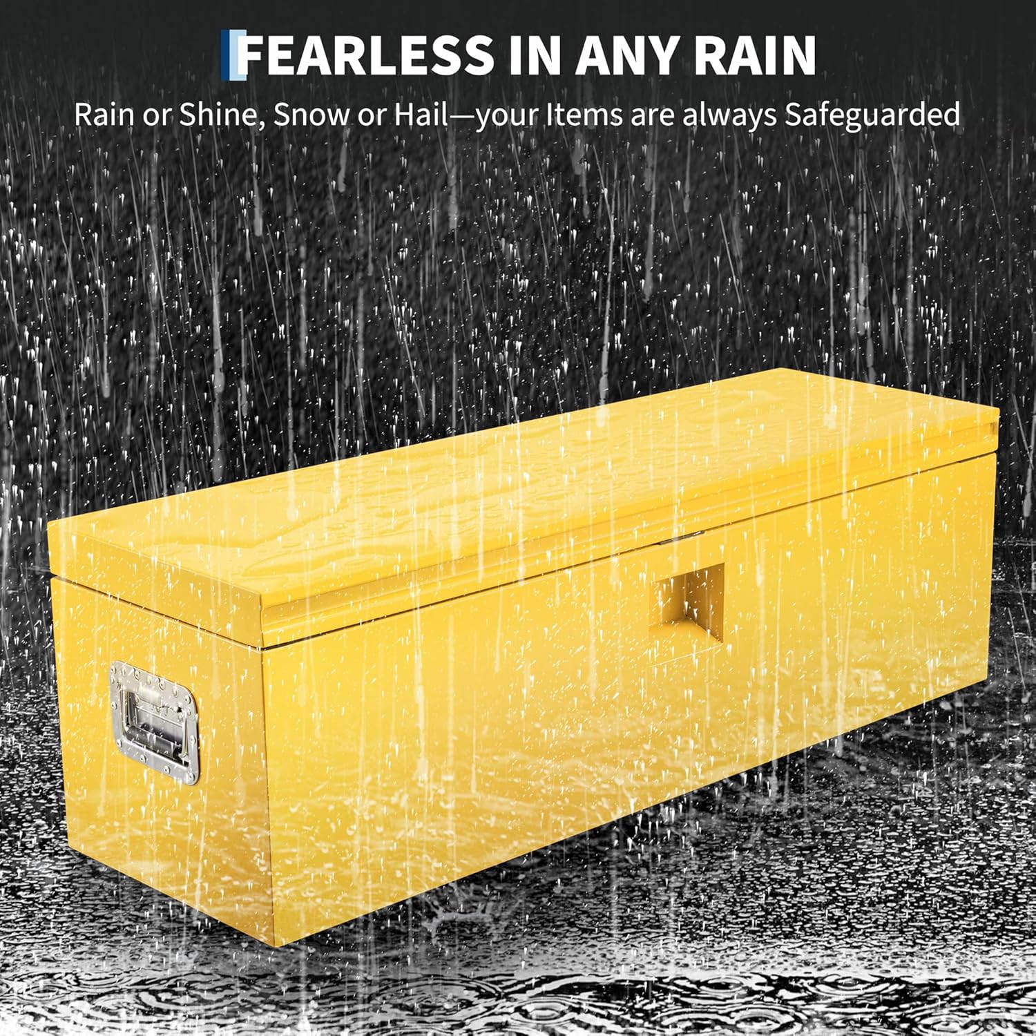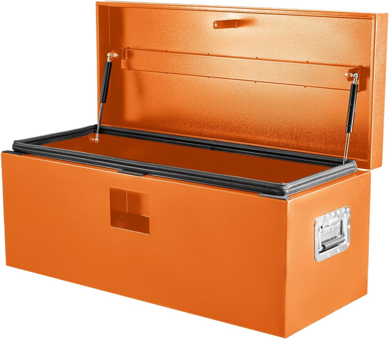 Durable Steel Construction – Crafted from reinforced gauge steel with a textured powder coat finish, this tool box resists impacts, scratches, and corrosion for exceptional long-term reliability in tough conditions.Smooth, One-Handed Access – Twin heavy-duty hydraulic rods ensure smooth lid operation, preventing sudden drops and enabling effortless one-handed access even in extreme temperatures.Optimized Storage & Low-Profile Design – Deep rectangular interior maximizes usable storage space for tools and gear while maintaining a low-profile footprint that won’t obstruct your truck bed.Enhanced Security & Weatherproofing – Drill-resistant stainless steel latch and hardened lock deliver superior theft protection, while a triple-seal gasket provides a watertight, dust-proof barrier to safeguard your valuables.Universal Fit & Easy Installation – Adjustable stainless steel brackets and laser-cut bolt holes simplify mounting for a precise, secure fit on major full-size trucks like Ford F-Series, Silverado/Sierra, and RAM.