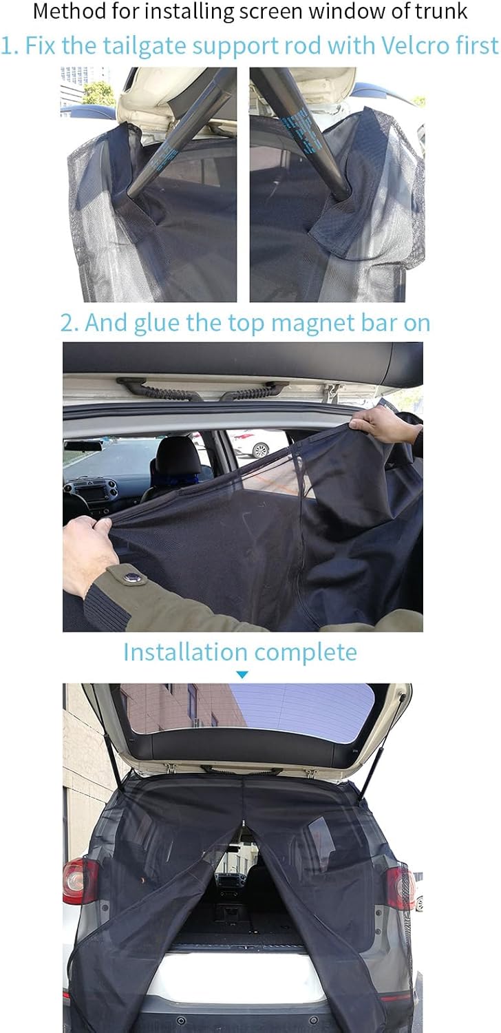 Car Tailgate Net Mount Camping Ventilation Mesh For SUV Trunk SunshadeFeatures:Quickly and conveniently install the magnet- and pad inside the luggage compartment frame, attach the hook and loop- fasteners to the luggage compartment lifting bracket, and then connect the magnet- to the luggage compartment frame.nylon mesh, it is and has an ultra-thin 1mm hole, which can and fly-.Protect the car from the buzzing of and making it an ideal- for outdoor camping and driving travel.Two way zipper closure.There are 4 sizes to choose from, with small sizes suitable for bracket spacing of 100-115cm; The size is suitable for brackets with a spacing of 116-120cm; The spacing between large-sized brackets is 121-125cm; Enlarged size is suitable for brackets with a spacing of 126-135cm.Specifications:Nylon Size Approx.160x150cm 63 x59.05 (S),172x150cm/67.71''x59.05'' (M),180x150cm/70.86''x59.05'' (L),192x150cm/75.59''x59.05'' (XL)Package Includes:1x Car NetNote:Please allow 1mm errors due to manual measurement. Due to the difference between different monitors, the picture may not reflect the actual color of the item.