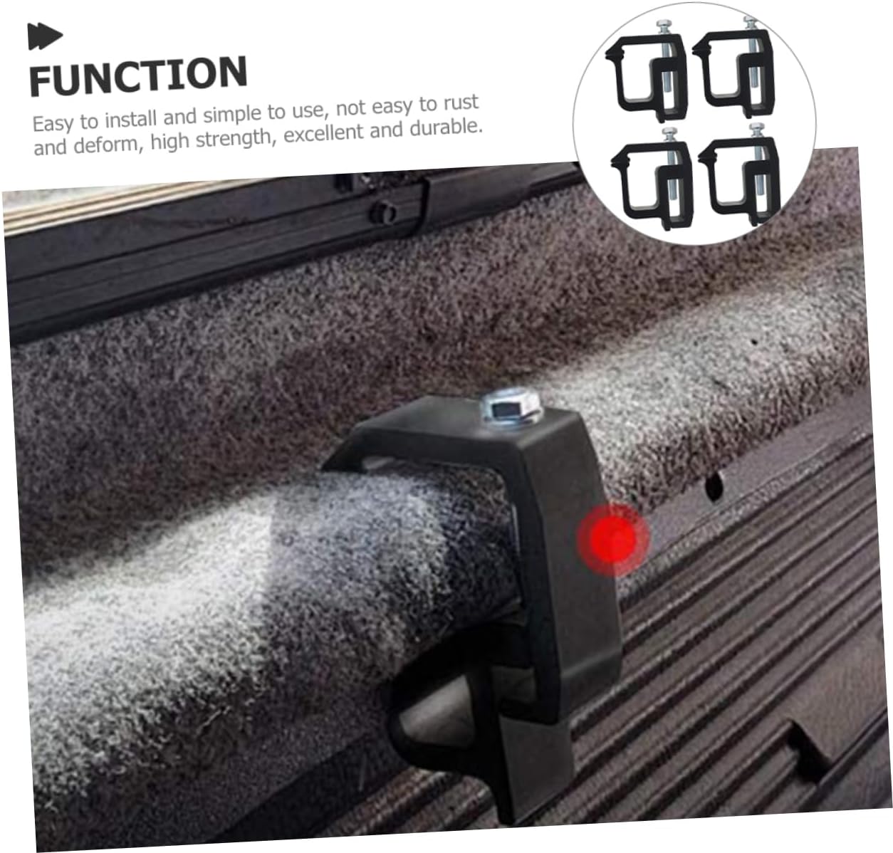 Package Include 4 Cap Mounting Clamps Features -Size:8.50X7.85X3.00cm/3.34X3.09X1.18in Truck Bed Clamps - Wide Application: Suitable for various of vehicles such as trucks and RVs Truck Cap Topper clamps. -Material:Aluminum alloy, iron Camper accessory -Color:Black Canopy Clamps for truck - Stable and Reliable: Made of high-strength materials to ensure firm fixation and prevent loosening Clamps for camper shell. - Easy to Install: Simple and user-friendly design for easy and quick installation and removal truck accessory. - Stylish Appearance: simple shell design fashionable and coordinated look with the vehicle Mounting Clamps. - Easy to install and simple to use, to and deform, high strength, excellent and durable. Camper Shell ClampsGoods InformationClamps for camper shell The product is an excellent Truck Cap Mounting Clamp that can bring you more convenience, allowing you to have comfortable experience.Camper Shell Clamps This product is a Truck Cap Mounting Clamp, made of solid materials, safe and durable.clamp for Truck Cap It without being easily damaged