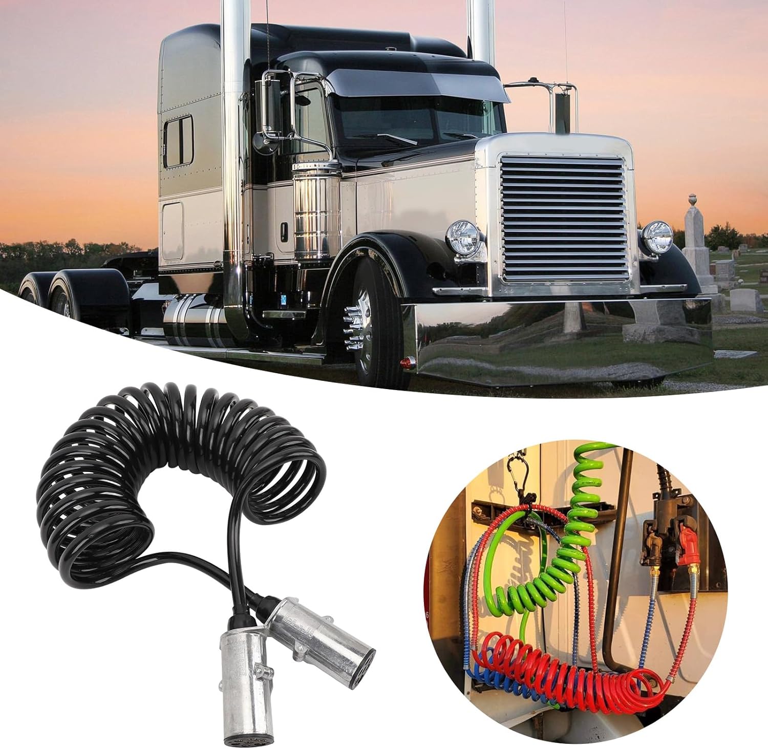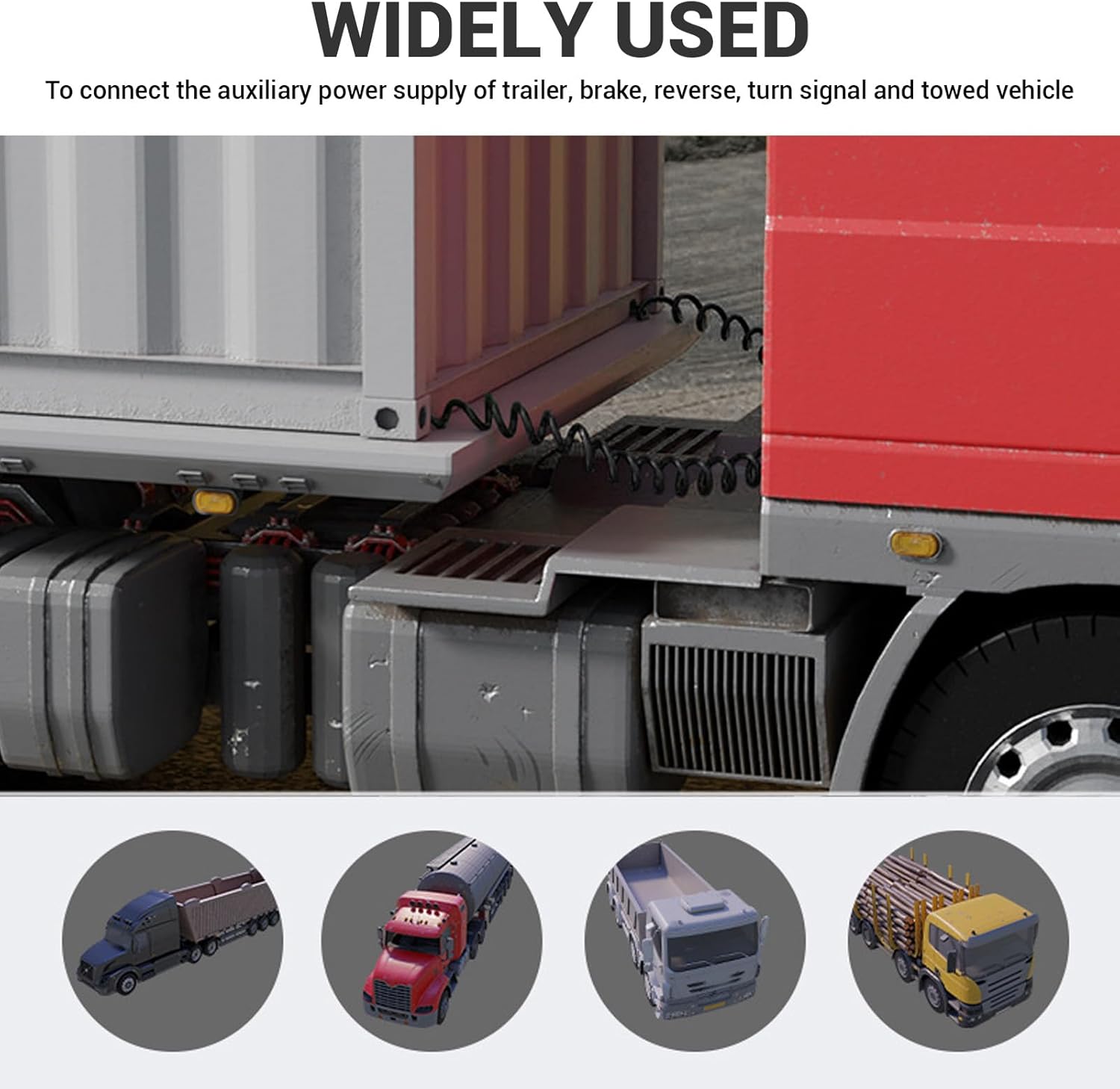 1. Premium Materials: Copper made 7 way trailer cable ensures excellent heat conduction and electricity conduction, ensuring safety and extending the cable's lifespan. 2. Industry Standard Plug: Equipped with SAE J560 plug, the industry standardzinc cast plug efficiently transmits power from the engine to your trailer truck. 3. Versatile Usage: Suitable for connecting brake lights, reverse lights, turn signals, and auxiliary power for vehicles such as cars, RVs, s, caravans, etc. 4. Ensures Safety: The 7 way trailer cord ensures the normal functioning of crucial lighting systems such as turn signals and brake lights while driving. 5. Convenient Installation: 7 way trailer cable allows for an easy connection and ensures that the connection process is stable and reliable and will not come loose. Specification: Item Type: 7 Way Trailer Cord Material: Zinc alloy + Copper +ABS Application: For connecting brake, reverse, turn signal, and auxiliary power Plug Standard: 7 WAY SAE J560 PLUG Compatible Vehicles: Fit for Semi Trucks Tractors trailer, RV, , caravan, food van, and other towed vehicles PackageList: 1 x 7 Way Trailer Cord