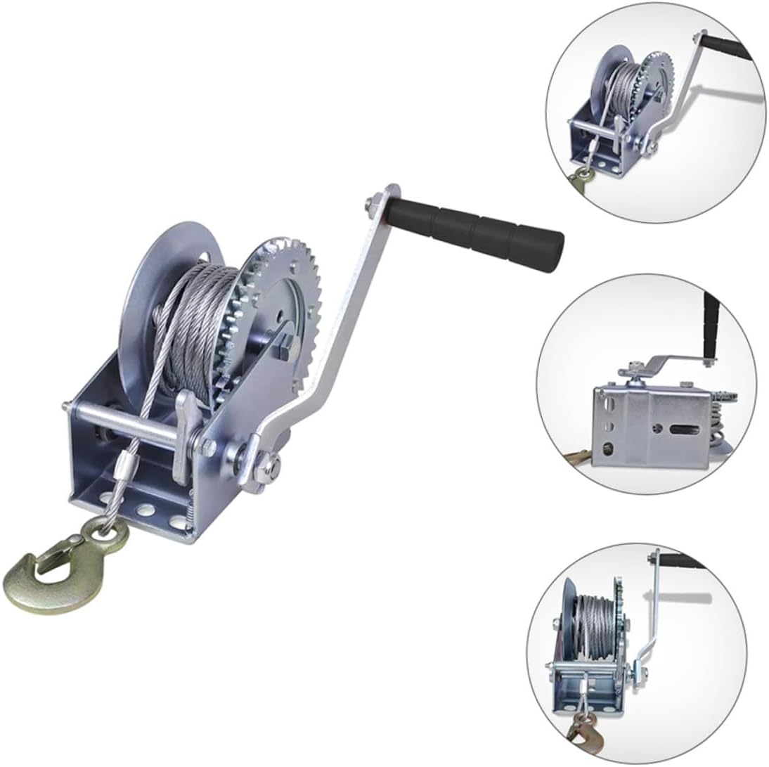 Package Include 1 x hand winch 1 x steel wire rope (10m) Characteristics -Wire rope diameter: about 4 mm/0.16 inch heavy duty winch. -Gear ratio: 4.1:1 towing towing winch. -Material: Steel. -Product Info:Hand winch with steel cable -Pull force: 1500 kg manual atv winch. -Color: Silver. -Cable length: about 10m/32.8ft Towing Winches. - Size: 25.00X19.00X15.00cm/9.82X7.47X5.89in -Breaking strength: about 1500kg winch for truck. -The design is reasonable, the grip is comfortable, and the . The crank is easy to shake, reducing hand fatigue winch wire rope. -Made of sturdy steel, it has a and excellent texture hand crank cable winch. -Heavy-duty steel structure, wear-resistant, very durable, and can better meet your needs heavy duty boat winch. -Small and portable, professional and practical, it can serve you well and will not take up too much space when used hand crank strap gear winch. -The multi-function manual winch is good for loading/towing boats, lawn equipment or lifting heavy objects boat hand winch.Goods Informationsmall hand winch This is an efficient and practical hand winch, mainly made of sturdy and durable steel, durable and not easy to damage.Boat Towing Winch The design structure is reasonable, the texture is good, it can carry heavy objects, and it is easy to carry.manual winch This is an excellent traction tool that will to your daily