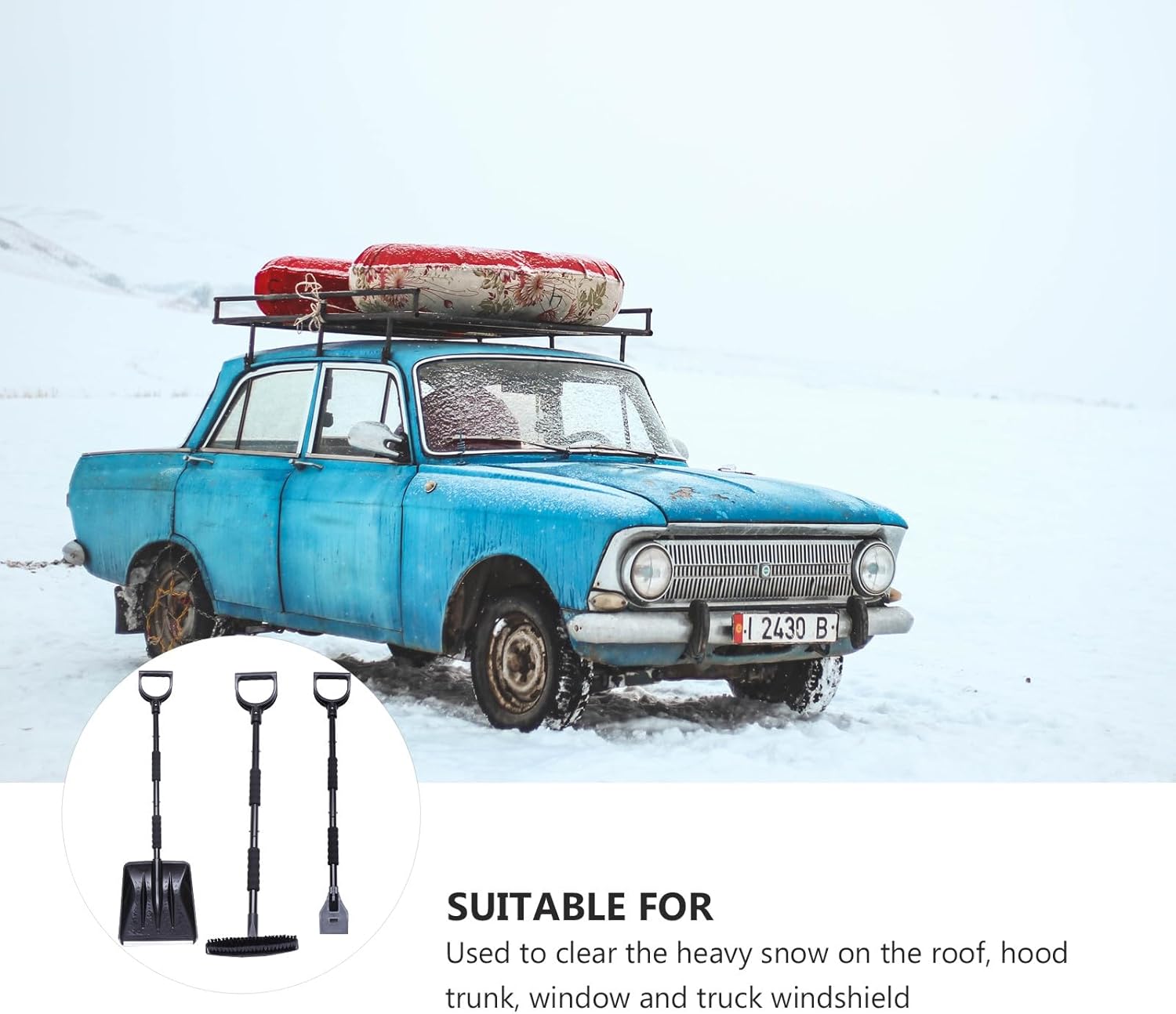 Package List 1 x set of snow and ice removal tools Characteristics -Product Info:Snow shovel set -Grip: 14.50x13.00x2.00cm/5.70x5.11x0.78in snow removal tools -Total length of three-section rod: 90.5cm/35.62in snow ice scraper -Color: Black -Scraper : 27.00x32.00x4.00cm/10.62x12.59x1.57in snow brush shovel -Shovel : 15.00x9.00x4.50cm/5.90x3.54x1.77in snow shovel scraper -Brush : 14.50x10.00x5.00cm/5.70x3.93x1.96in car snow remover -Size: 113.00X27.00X4.00cm/44.41X10.61X1.57in -Material: iron - Snow brush to remove snow on your car easily, sweep more snow time and protect car from scratch ice scraper. - Easy to hand and control when use it. Adjustable and detachable design, can be used as brush, shovel or scraper auto car snow removal. - The expandable snow brush can be used to remove snow, leaves, and other debris from the roof of your house, car, shed truck, or garage snow remover. - Ice scraper is mainly used to break through ice surface on windshield quickly car snow brush. - Wide application. Suitable for home, square, park, courtyard, etc, make it winter snow cleaning more easy for you auto snow shovel.Goods Informationauto snow shovel Lightweight structure for easy handling, simple parts for easy assembly and storage.ice scraper And the large shovel allows removing the amount of snow time.car snow removal tools This snow removal tools set won’t scratch or scuff your vehicle's paint.snow ice scraper Consists of several sections of iron poles that can be connected easily