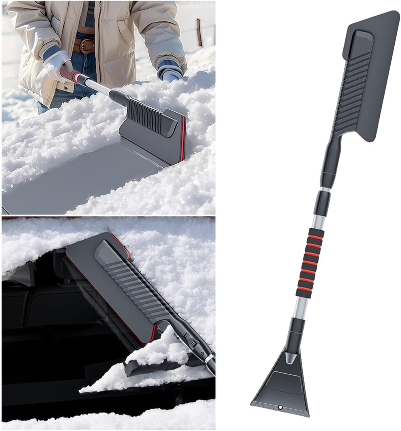 3 In 1 Car Snow Shovel Universal Windshield Snow Remover Front Windshield Ice Scraping Defrost Broom Car Vehicle SnowmobilesSpecification:Origin: Mainland Material: ABS, PC, Ethylene-Vinyl Acetate, Aluminum AlloyColor: BlackSize: About 80.5*Shovel Head Width 10.5cm/31.4*4.1inTelescopic Size: About 102.5*Shovel Head Width 10.5cm/39.98*4.1inSuitable Car Model: Universal Type1*Extendable Ice ScraperHign-concerned : None