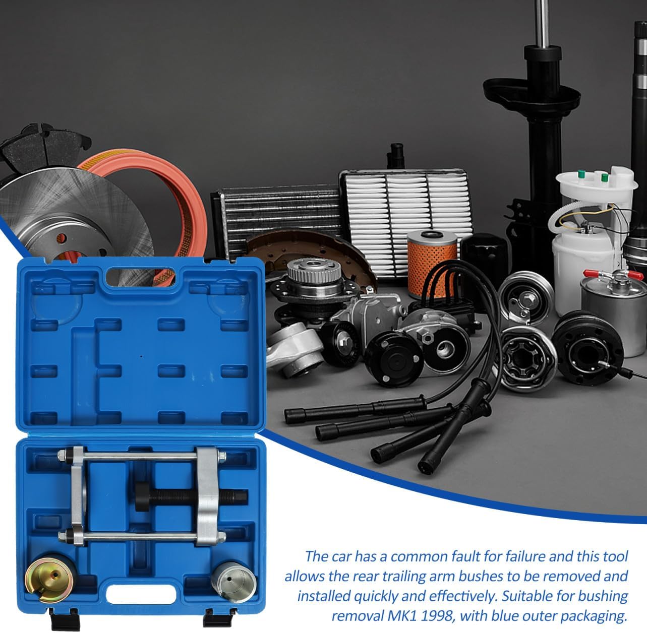 Package List 1 Set x Rear Suspension Removal Tool 1 x Carry Case Features -Color: Assorted. -Size: About 25.00X15.50X9.50cm/9.82X6.09X3.73in. -Material: Steel. -Product Info:Rear shaft sleeve tool - The package contains several tools for disassembly of rear suspension bush to meet your different needs Rear Suspension Arm Remover. - Removal and installation of new bush to rear trailing arm without damage to the sensor Bushing Tool. - Made of sturdy and durable steel materials, it . - Allows you to quickly disassemble the rear trailing arm bush and your work efficiency Arm Bush Repair Tool. - The package contains a tool box, which is convenient for you to enter storage and carry it outdoors Arm Bushing Repair Tool.Goods InformationRear Arm Remover The car has a common fault for failure and this tool allows the rear trailing arm to be removed and installed quickly and .Rear Suspension Removal Tool Made of and durable materials, with a .Rear Arm Removal Tool Designed to quickly and remove and install rear trailing arm , reducing the chance of damage