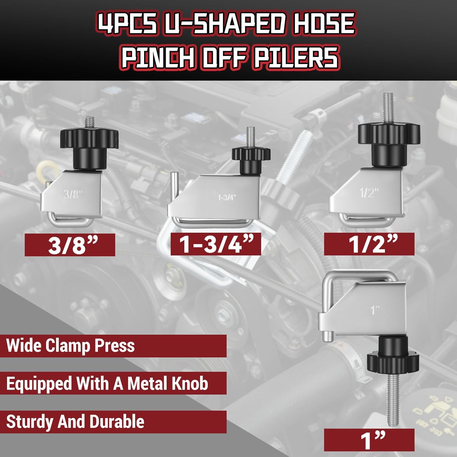 Upgrade your toolbox with our 16PCS Hose Clamp Pliers Set! Whether you're a professional mechanic or a car enthusiast, this comprehensive hose clamp tool kit provides everything you need to tackle hose clamp-related tasks with ease.Crafted for durability and performance, our hose clamp pliers set is designed to handle the toughest automotive jobs. The set includes multiple plier types, including flexible hose clamp pliers and Clic-R type collar pliers, ensuring you have the right tool for any situation, these tools excel in removing and installing hose clamps in confined spaces, make it your ideal choice.Unlike ordinary pliers, our kit features a robust construction with hardened steel jaws and comfortable ergonomic handles allowing you reduce fatigue during use and save your time.
