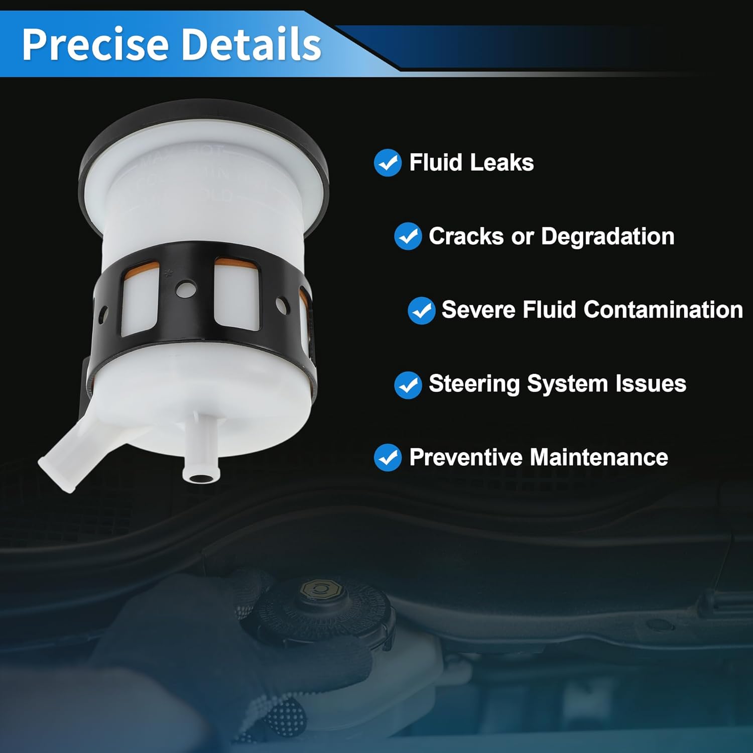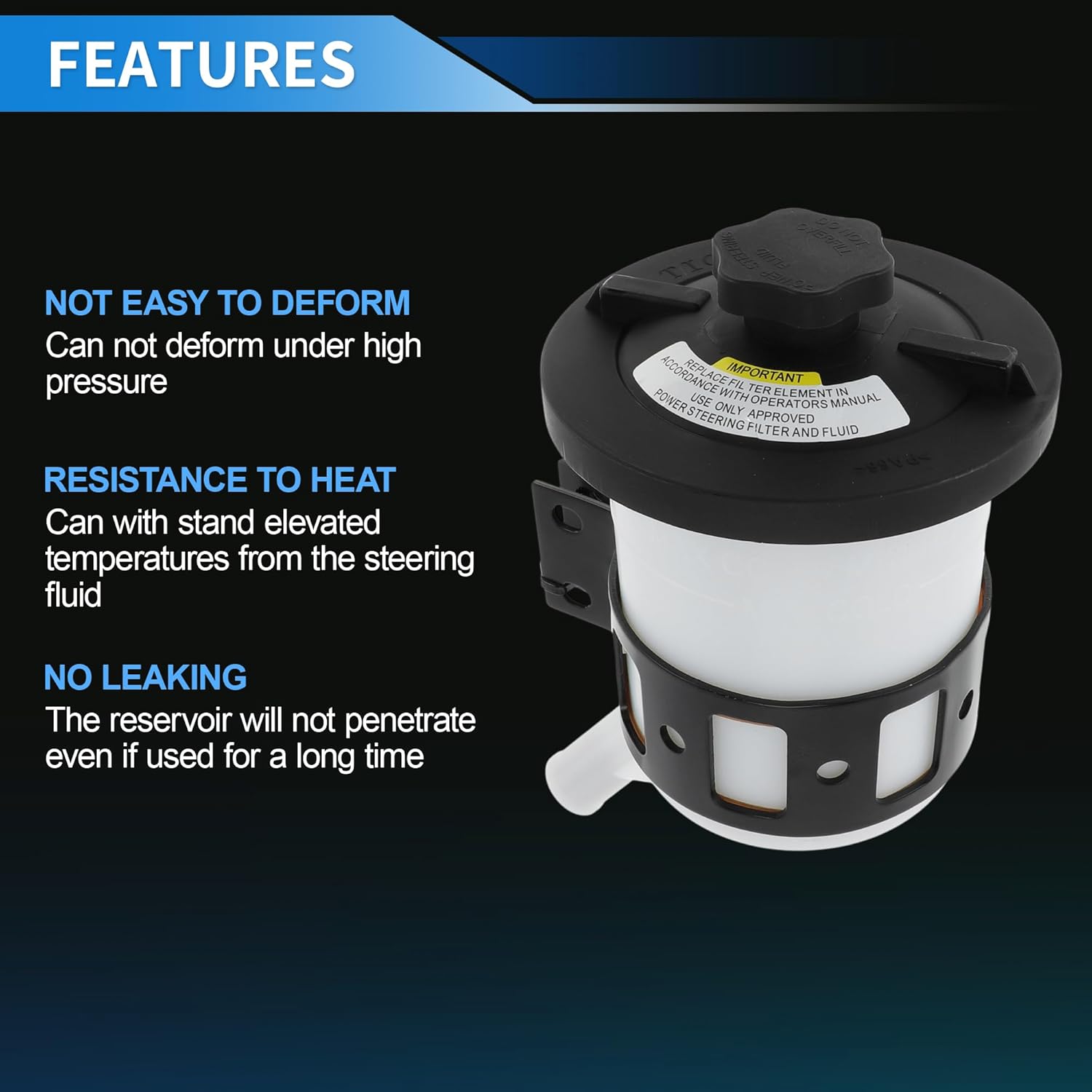 • [Package] Include 1x Engine Power Steering Fluid Reservoir. Please Note Check the power steering system regularly.