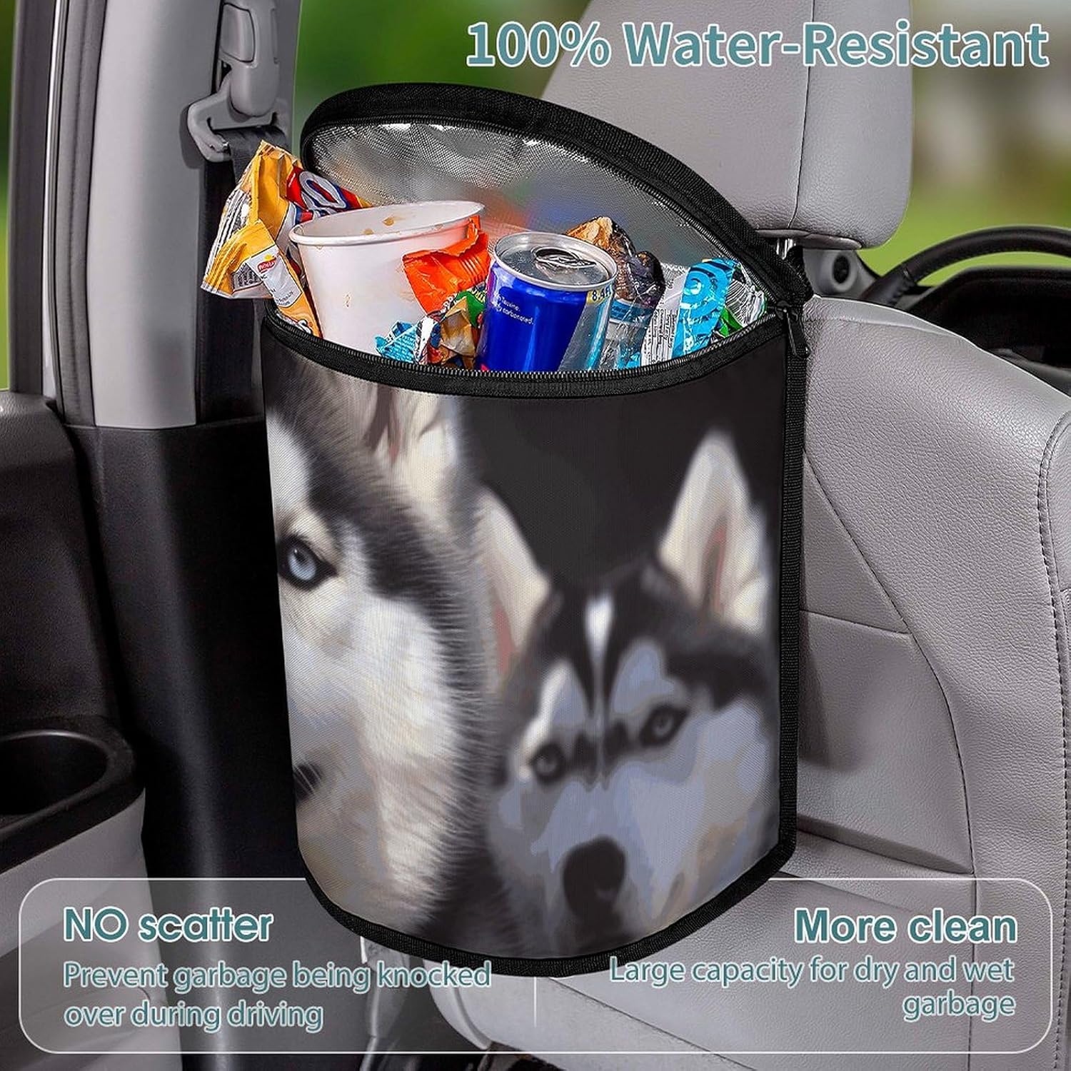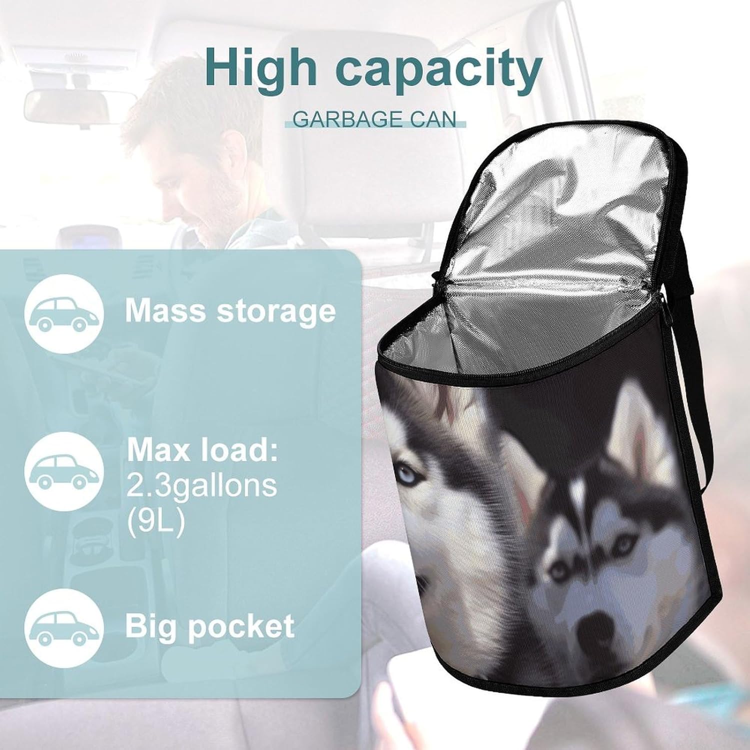 Our Husky Dog printed car trash cans is made of good polyester that is scratch- and tear-resistant, and the carefully designed zipper not only improves durability but also adds a touch of fashionDesigned with user experience in mind, this trash can features a reinforced handle strap for easy lifting and moving, providing a secure grip whether you need to empty the trash can or relocate it to your vehicle. The included lid also effectively prevents spills and odors, so you can say goodbye to a messy and unpleasant vehicle interiorOur mini trash can for car is small in size but offers a lot of storage space. It can easily accommodate all kinds of in-car trash. From wrappers, beverage bottles to other small items, this trash can can easily handle it, ensuring your car stays clean and tidyOur car trash can for back seat is versatile and suitable for cars, SUVs, trucks and RVs, making it an ideal companion for all your travel adventures. Its functions go far beyond the vehicle itself - it can also be used in the bathroom or other areas where garbage storage is needed. Don't miss out on this must-have car accessory. Come and experience the change it brings to your car