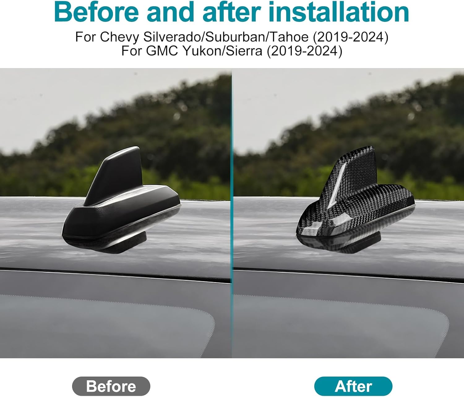 Give your car a clean, customized look with this Black Hard Carbon Fiber Antenna Cover Trim Overlay, specifically designed for 2019–2024 Silverado 1500/2500/3500 models. This accessory is an overlay decorative sticker that installs directly on top of the original antenna base — not a replacement part. Crafted from durable hard carbon fiber-style material, it delivers a premium textured finish that resists scratches, fading, and harsh weather. The UV-protective coating ensures long-lasting color and shine, even under constant sun exposure. Installation is quick and hassle-free. With automotive-grade adhesive on the back, simply clean the antenna base, peel the tape liner, and press the cover into place. No tools, no trimming, and no damage to your vehicle. Perfect for Silverado owners looking to enhance their truck’s exterior appearance with an affordable and stylish trim overlay.