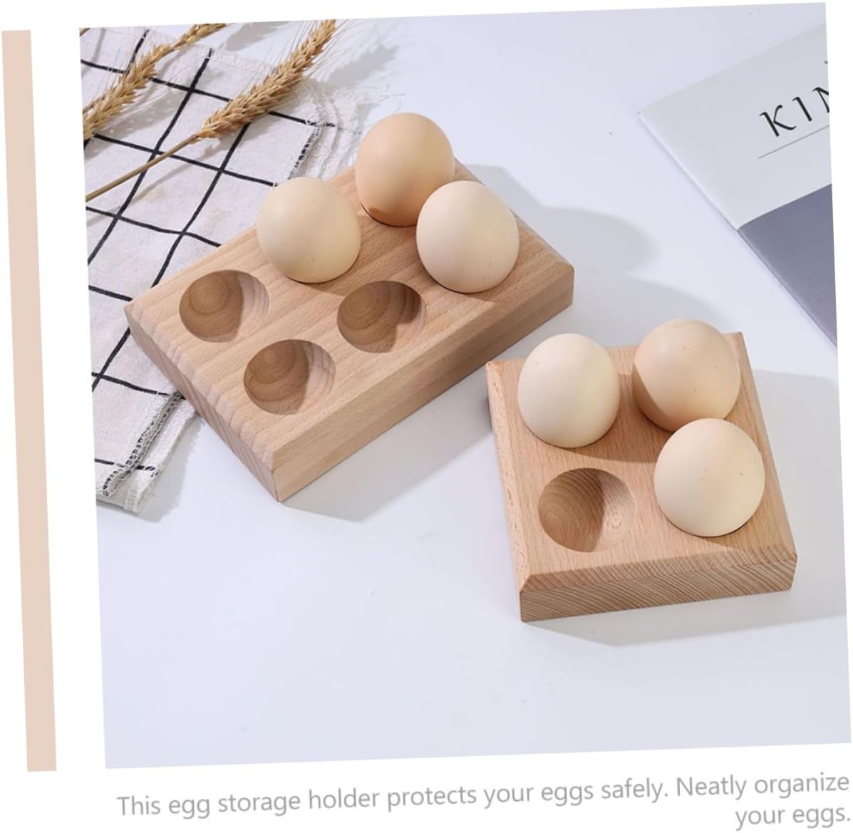 Package Include 5 x Egg HolderFeatures -Color:Khaki wooden kitchen egg stand-Material:Wood egg holder container-Size:11.00X11.00X3.00cm/4.32X4.32X1 egg tray for refrigerator.-Specification: 4 compartments egg container-Fine workmanship ensures the practicality and durability, can be used for a long time egg fixing holder.-The egg stand is made of good material, which has the protective egg holder.-This egg storage holder protects your eggs safely. Neatly organize your eggs egg stand.-Features the simple style, which is full of the simple beauty, you can use it as a decor egg holding container.-The wooden egg stand can bring you excellent storage effect, simple appearance can match with your home well egg holder countertop.Goods Informationegg Never have your eggs scattered or in danger of being broken again.deviled eggs Very safe and practical, durable and sturdy.drawer tray It can hold some eggs, and this is the perfect space saver for your kitchen countertop.egg storage holder This is a practical egg storage holder with simple style