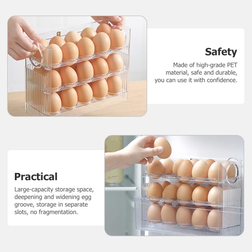 Features-Material:PET-Size:26.00X20.20X10.00cm/10.22X7.94X3.93in-Suitable for restaurants, kitchens, families and other places where eggs or eggs need to be placed.-Vertical storage, partition design, fit the egg shape, long-lasting freshness, and can protects the eggs in all directions.-Made of high-grade PET material, safe and , you can use it with confidence.-Large-capacity storage space, deepening and widening egg groove, storage in separate slots, no collision, no fragmentation.-The stable and firm bottom, the egg storage container allows your eggs to be stably placed in the tray.- Color: As Shown.- Size: 26X20.2CM.Package Including1 x Egg Holder Organizer