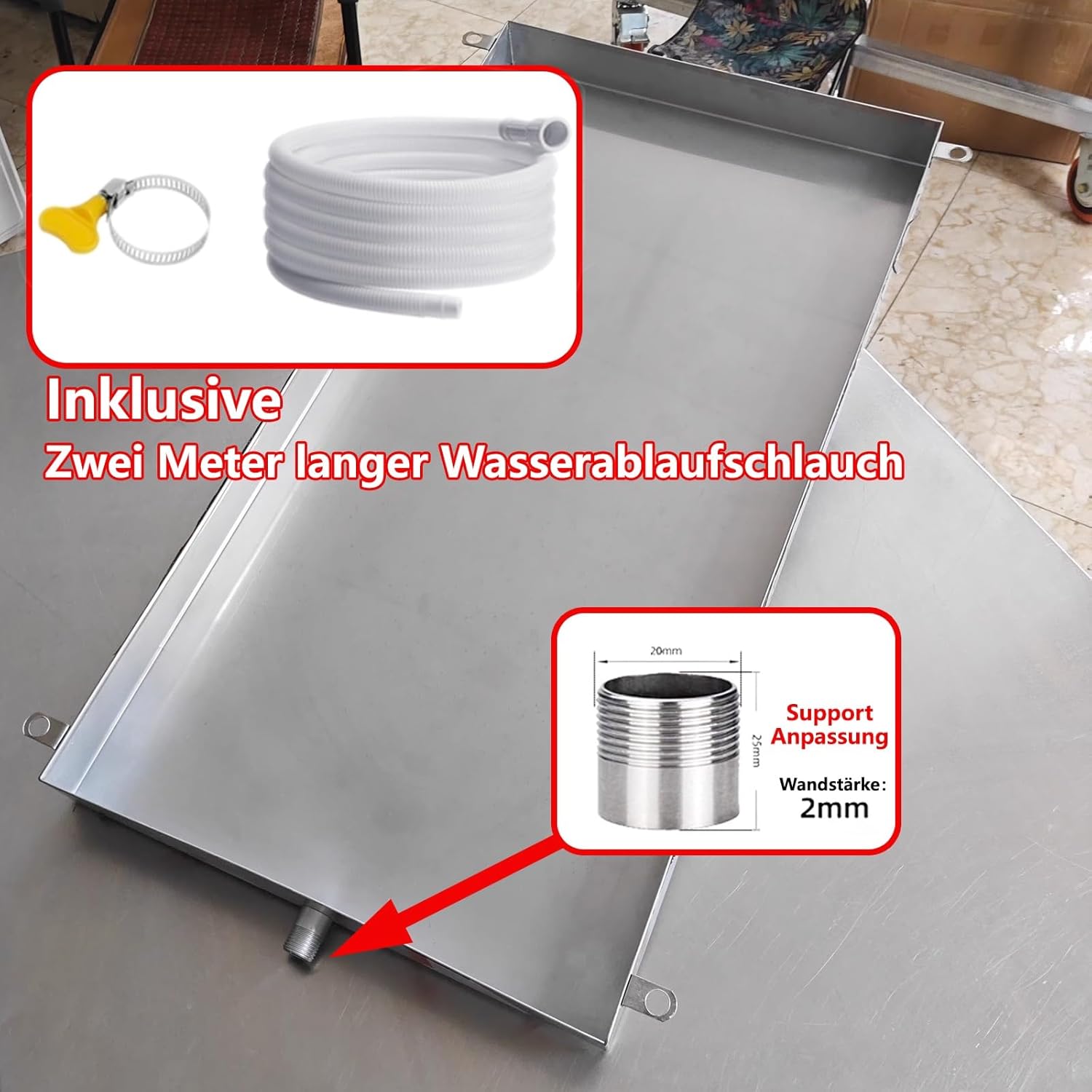 The air conditioner pan is an essential accessory designed to enhance the functionality of your outdoor AC unit while serving multiple practical purposes around your home and beyond. Crafted from high-quality 304 stainless steel with a thickness of 0.8mm, this sturdy pan measures 5cm in height and is available in a variety of sizes ranging from 20cm to 120cm, ensuring a perfect fit for your needs. One of the standout features of this air conditioner pan is its ability to prevent water leakage, dripping, and seepage from outdoor AC units, protecting your property from potential water damage. Additionally, this versatile tray offers a range of uses that make it a valuable addition to any household. Transform your entryway with this organizer tray that declutters mail, keys, and small items, keeping your essentials easily accessible. It's also perfect as a pet feeding drip pad, catching spills and crumbs from pet bowls to protect your floors and simplify cleanup. For gardening enthusiasts, this tray serves as a gardening gear drip tray, allowing you to rinse tools while preventing splashes that could dirty your workspace. When camping, it can hold toiletries and small gear, maximizing space in your bags. In the kitchen, this air conditioner pan functions as a microwave drip protector tray, collecting oil and condensation from heated foods, making cleanup quick and easy. It’s also a great aquarium maintenance tray, ensuring no leaks or spills occur during water changes. Use it as a succulent care tray to display small plants while collecting excess water, or as a refrigerator condensation tray to catch drips from produce and containers. This tray is also ideal for organizing small parts like screws and nuts, keeping your workspace tidy. Moreover, it works as a coffee station drip tray, catching drips from coffee makers to maintain a clean countertop, and as an outdoor grill drip mat to collect grease while grilling.