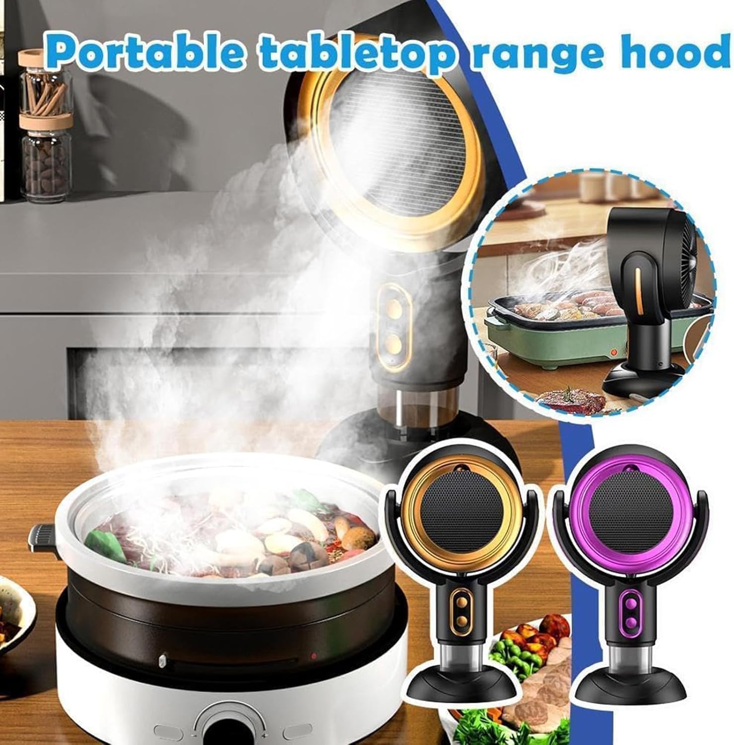Multifuntional Portable Soot Fan for Kitchens and Camping with Long Battery Life Air for Cooking and SootFeatures:powerful Soot and filtration with the ranges hood, designed to enhances indoor air through its multi layer filtrations and adjustable for in any setting.This portable ranges hood features a ABS construction, and two adjustable pressure setting, ensuring efficient Soot absorption and a modern aesthetic that complements any kitchen decors.Suitable for health individuals, home cooking people, and small apartment dwellers, this fan caters to those who prioritize cleans air and effective Soot management in living spaces.Perfect for home kitchens, open plan areas, dormitories, or even outdoor camping, the Puff Chilling Fan ensures by efficiently capturing oil droplets and odors, maintaining a freshs atmospheres wherever you are.With its low noise operations and energy efficient designs, this desktop ranges hood a seamlesses cooking allowing you to focusing on culinary creativity without the distraction of excessive noise or high energy costs.Specifications:Texture: ABSPower: 8WColor: Golden/PurplenessSize: Approx. 11.54x8.66inch(29.3x22cm)Package Includes:1x Ranges HoodNote:Please allow 1-2cm errors due to manual measurement.Due to the differences between different monitors, the picture may not reflect the actual color from the item.