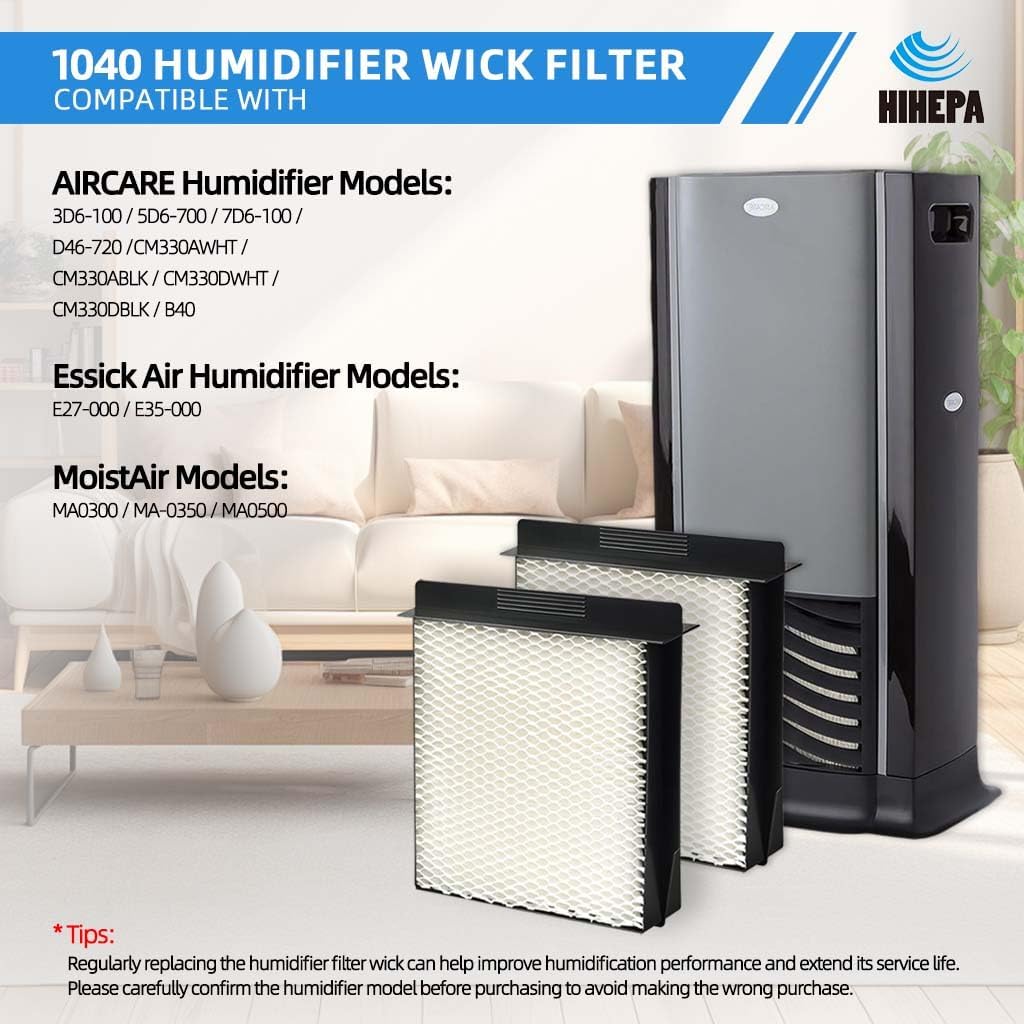 **Maximize Your Humidifier Performance!** Combat dry air effectively with our **Super wick filters** designed for **AIRCARE 1040 series** evaporative humidifiers. **Why Choose This 4-Pack?** ✓ **4x Super Wick Filters** - Sustain **optimal humidity levels** for 6-12 months ✓ **Evaporative Technology** - Naturally absorbs and releases moisture **without white dust** ✓ **100% OEM Fit** - Ensures **no air bypass or water leakage** ✓ **Eco-Conscious** - Biodegradable paper **Ideal For:** **Families in arid climates** (e.g., Arizona, Nevada) battling **low humidity** **During dry air season** needing **clean moisture** **Nurseries/offices** requiring **consistent 40-50% humidity levels** **Winter home maintenance** to prevent **wood furniture cracking** **Maintenance Tip:** Replace filters when **mineral buildup appears** or every **60-90 days** for best results. All AIRCARE/Essick/MoistAir brand and model names are registered trademarks of manufacturers. This is not an AIRCARE/Essick/MoistAir OEM product and is not covered manufacturer's warranty. The AIRCARE/Essick/MoistAir brand names and logos are the registered trademarks of their respective owners. Anyuse of the AIRCARE/Essick/MoistAir brand name or model designation for this product is made solely for purposes of demonstrating compatibility.