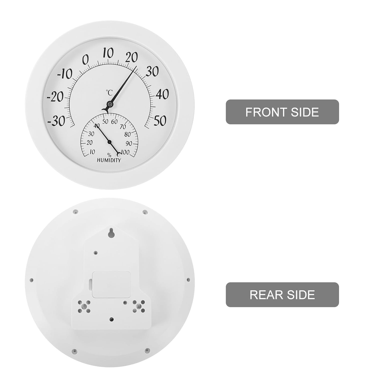 DescriptionIdeal for safeguarding your child's well-being, this indoor thermometers unit combines a multifunctional thermohygrometer and wireless hygrometer technology within a stylish round . Its easy wall mount placement lets caregivers see humidity and temperature , making it perfect for baby rooms, plant care, and comfortable management.Features-Color:White-Material:ABS+glass-Size:26.70X26.70X4.50cm/10.51X10.51X1.77in-Accurate Temperature & Humidity Updates: Our room thermometers and hygrometer plants combo provides reliable data, helping you control microclimate for your baby's comfort and wellbeing-Oversized Display: The analog hygrometer and round deliver effortless reading from a distance, with a bold display that supports parents’ busy routines-Dependable Measurement: This analog thermograph keeps monitoring uninterrupted, providing accurate home hydrometer readings anytime you need them-Sleek WallMounted Integration: Integrates as a wall hygrometer and nursery , keeping the nursery organized and stylish while ensuring quick status checks-Continuous Indoor Environment Awareness: Multifunctional thermohygrometer continuously records conditions, enabling parents to respond quickly to air quality changes and keep the nursery safe