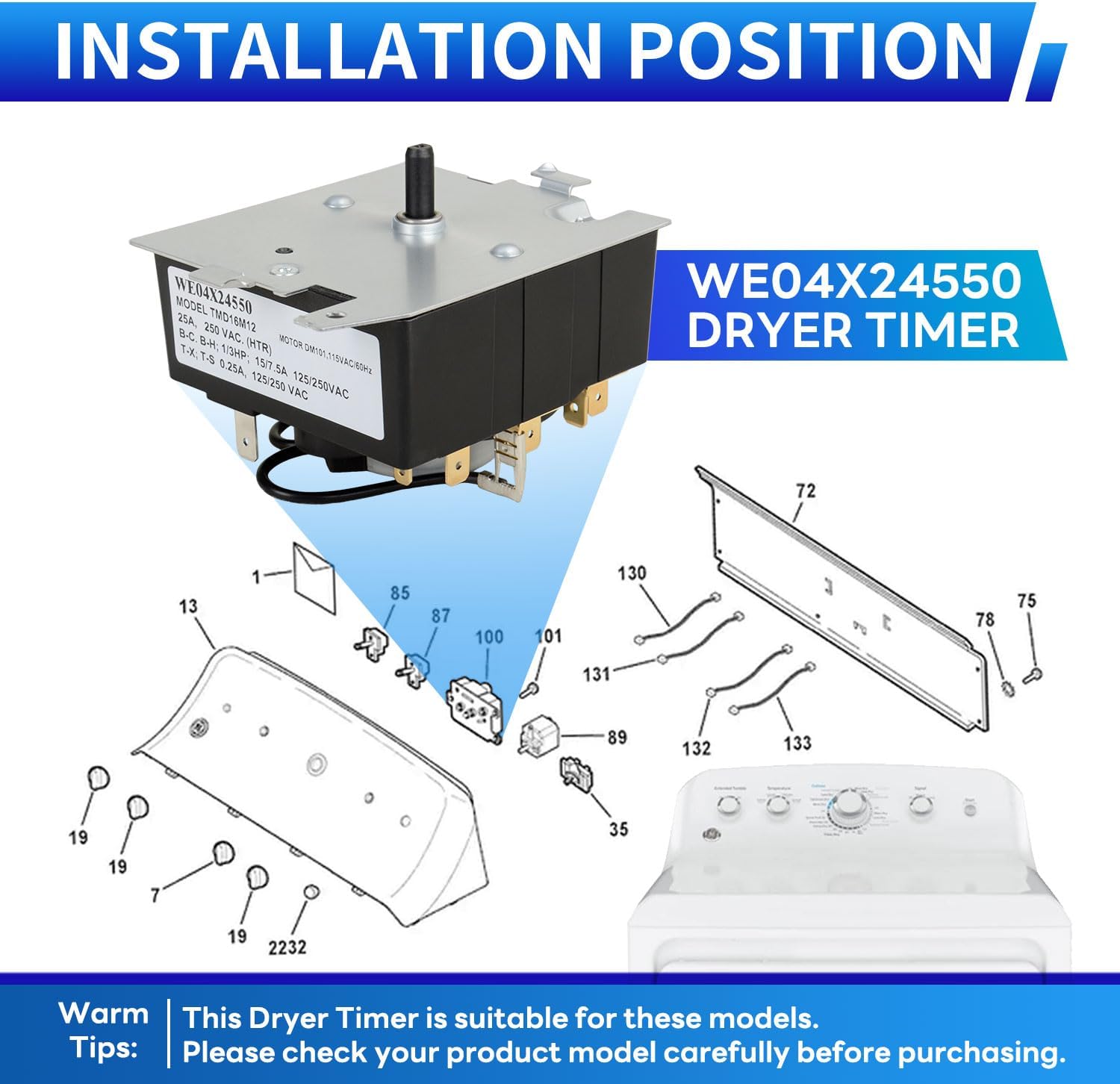 WE04X24550 234D2377P004 TMD14M30 Upgraded Dryer Timer Compatible with GE, for Hotpoint Replace WE04X24550 WE04X24549 4546121 PS11763064 FIX11763064 TMD14M30